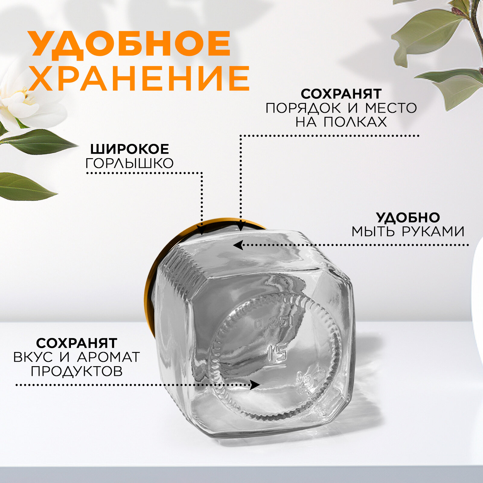 Набор банок с крышкой, ТО-66 мм, стекло, 200-250 мл, 6 шт.