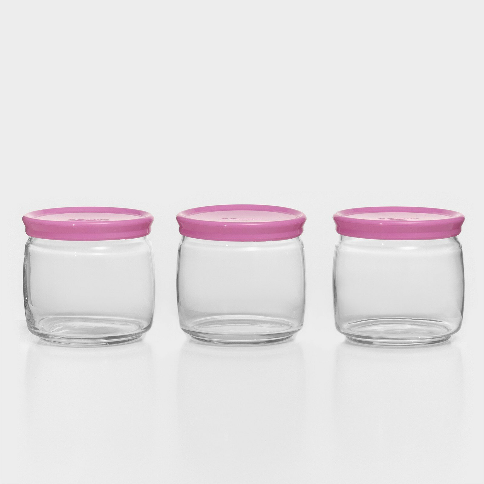 Купить Банка для хранения, с розовой крышкой 500 мл, набор 3 шт., Pasabahce