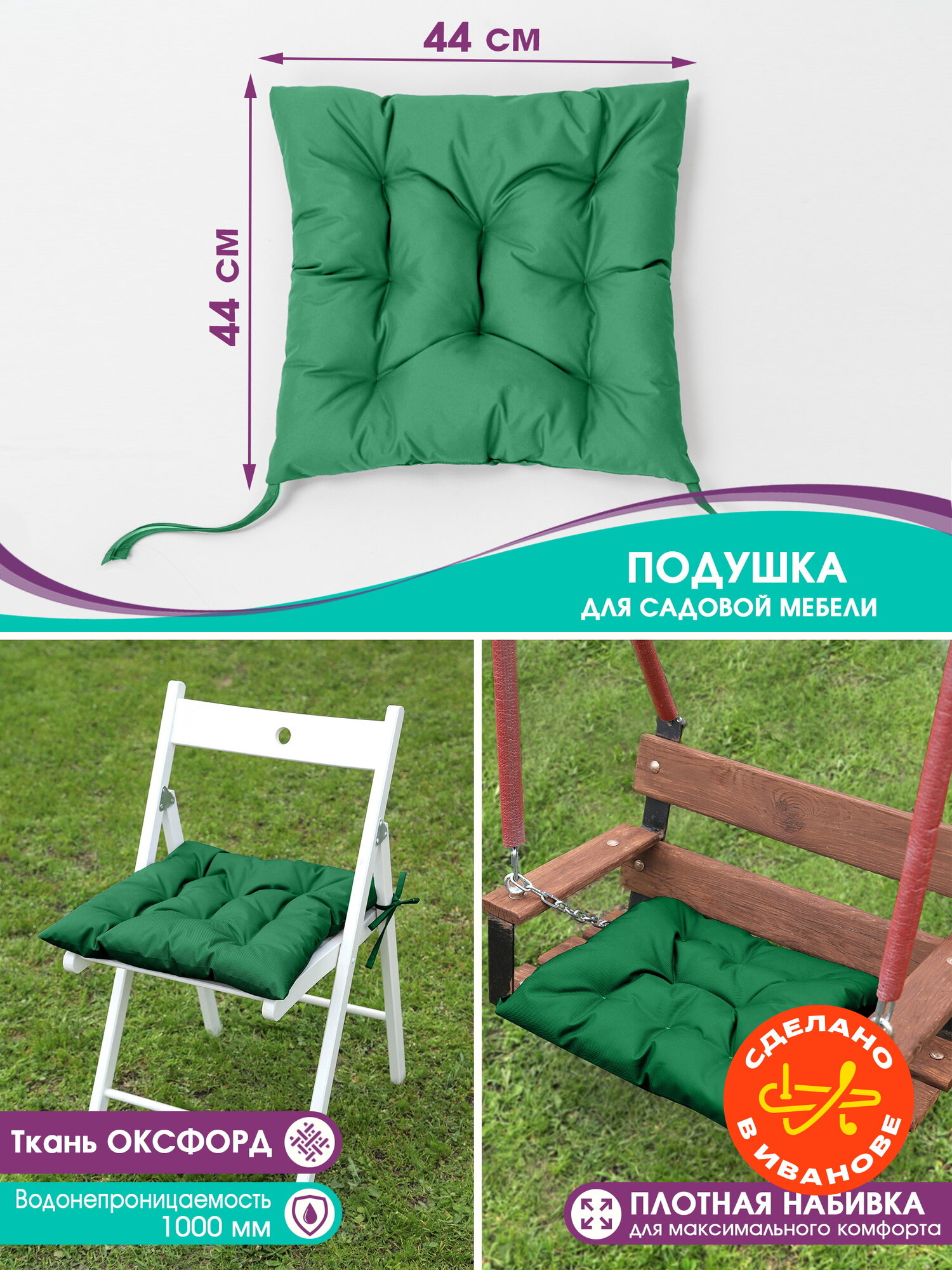 Купить Подушка на стул и для садовой мебели,для качелей,на кресло,в баню ,водонепроницаемая 44x44 см зеленый,1шт