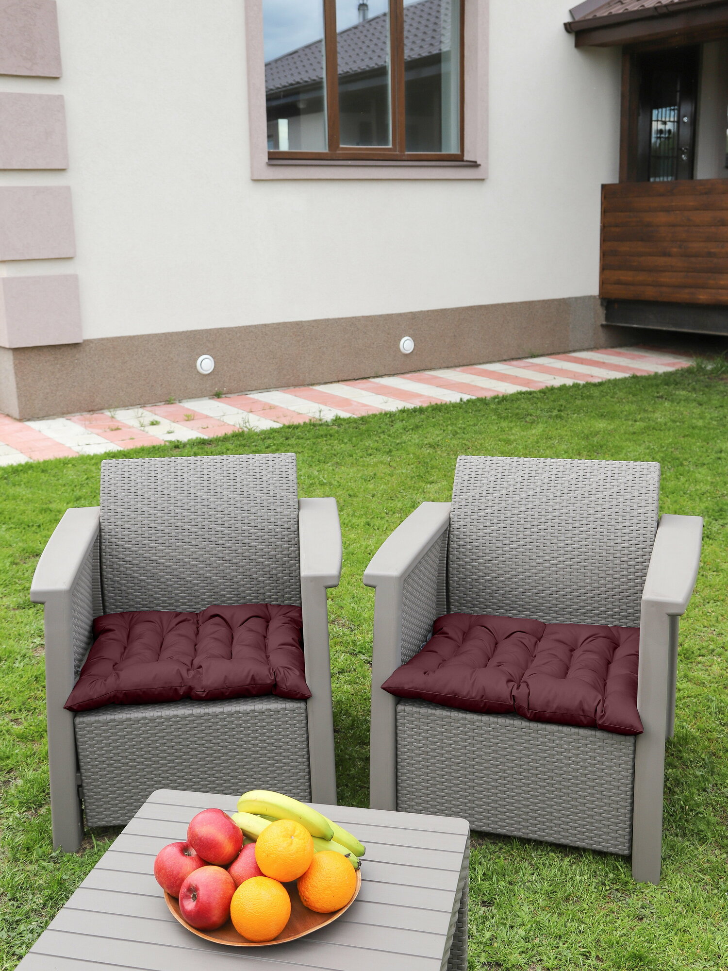 Подушка на стул и для садовых качелей,подушка на кресло,водонепроницаемая 44x44 см,бордо,1шт