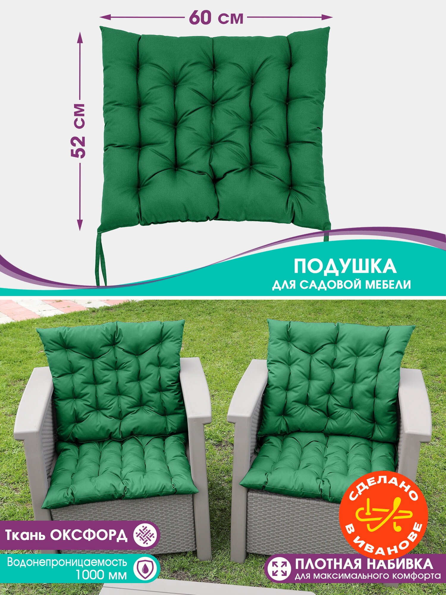 Подушки для садовой мебели Bio-Line, на стул,кресло,для качели, водонепроницаемая, на завязках, 52*60 см/зел,1шт