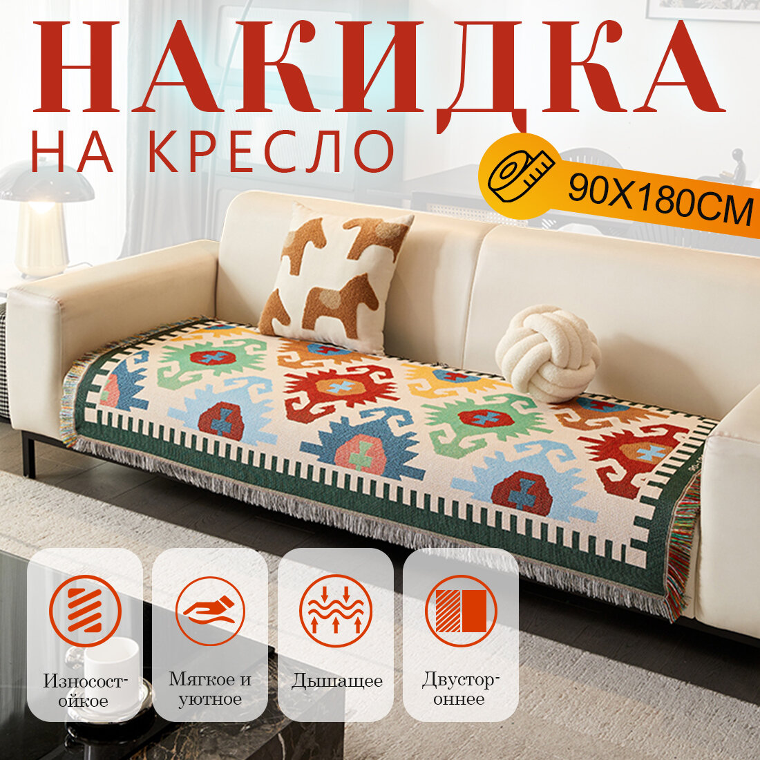 Покрывало на диван, кресло, одеяло хлопковое, плед пляжный, туристический, коврик для пикника, размер 90X180