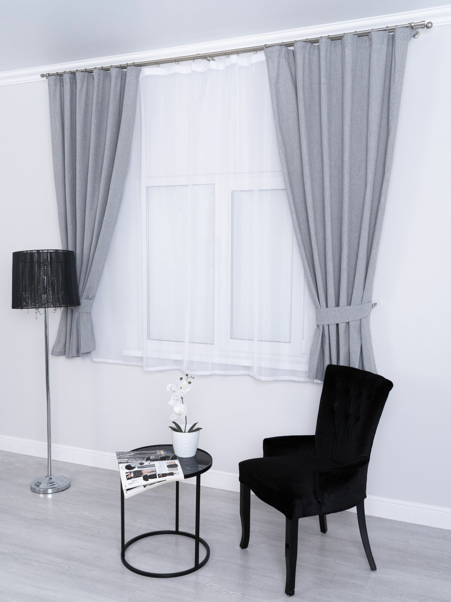 Шторы короткие Worldacces, 145х190 см с подхватом (темно-серые 2 шт)