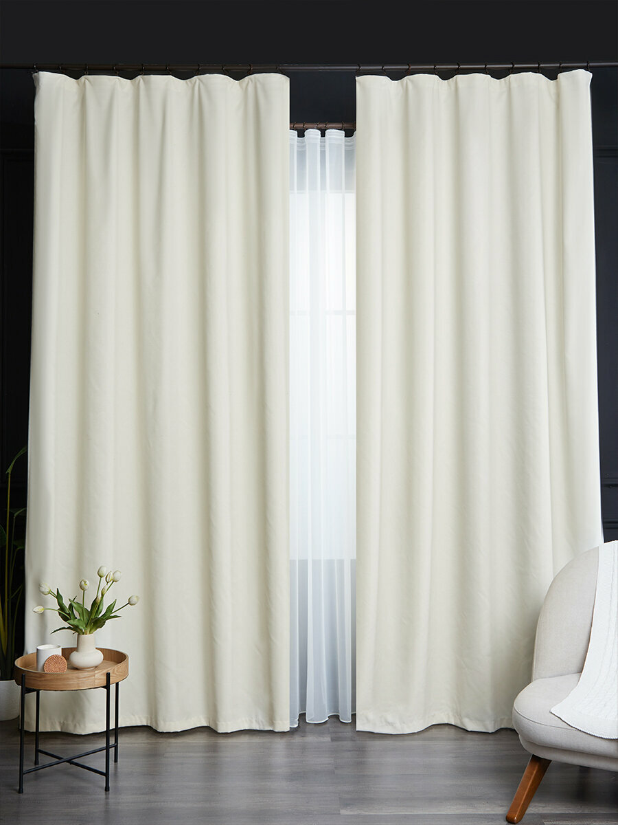 Готовый комплект плотных интерьерных штор(портьер) канвас (2 шт., каждая штора 150x150 см) со шторной лентой