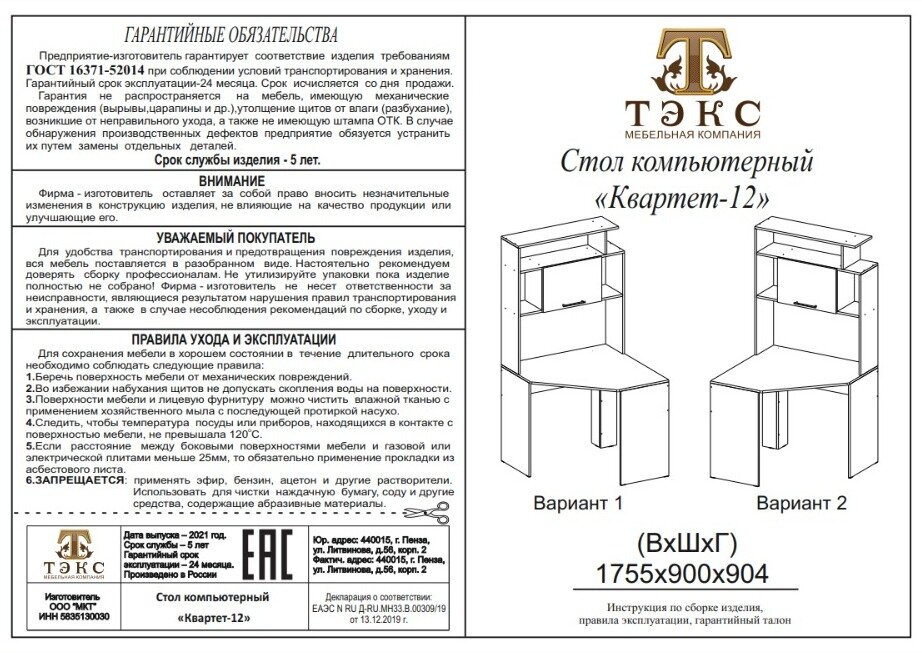 | Тип товара | компьютерный стол |