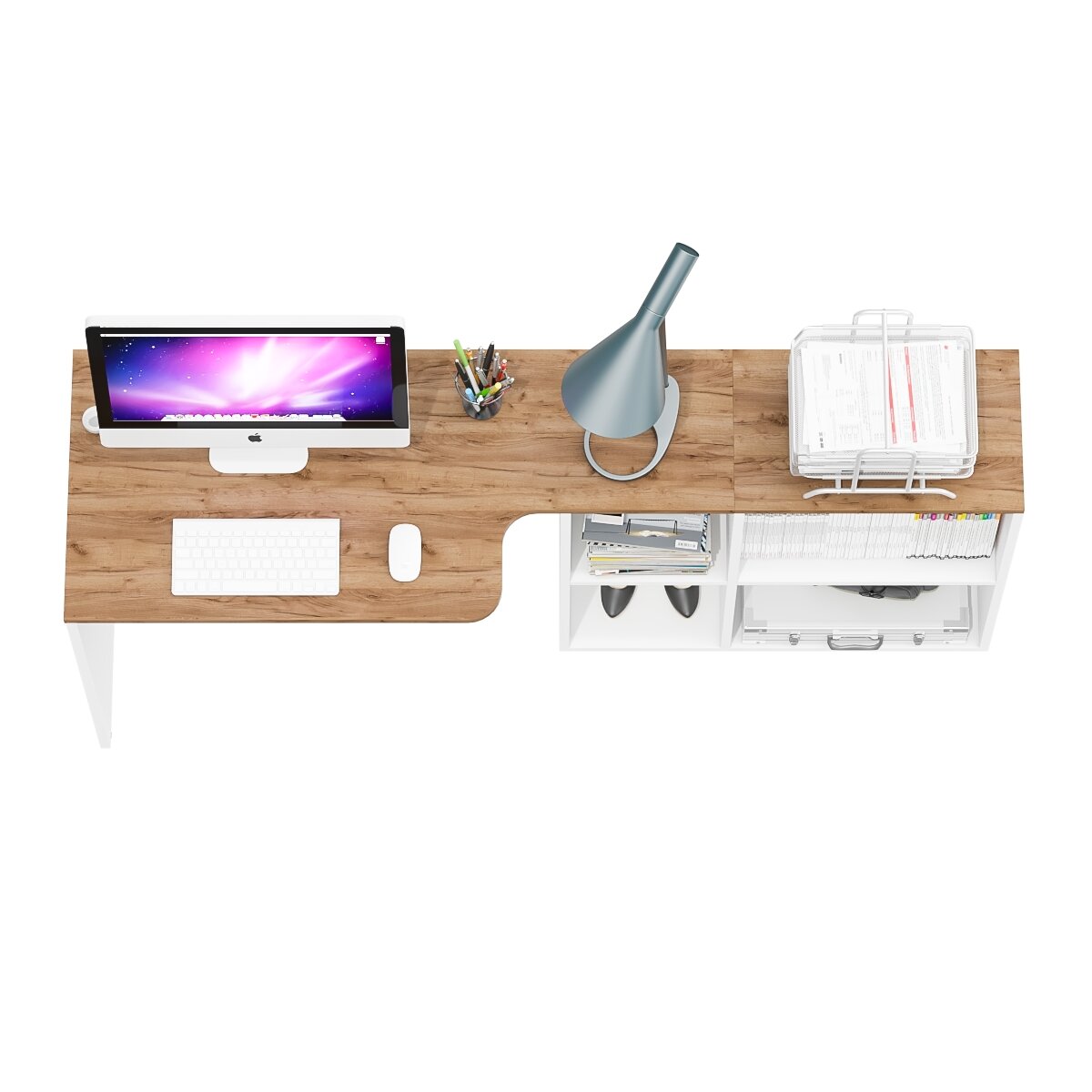 | Дополнительная информация | стол-трансформер с тумбой на четыре полки представляет собой превосходное сочетание стиля и функциональности; с возможностью сборки в трех вариантах — два угловых и один прямой; благодаря встроенной тумбе с четырьмя полками; вы можете выбрать угловую конфигурацию для оптимального использования углов комнаты или прямой вариант для классической расстановки мебели; пластиковые подпятники; поставляется в разобранном виде в упаковке |