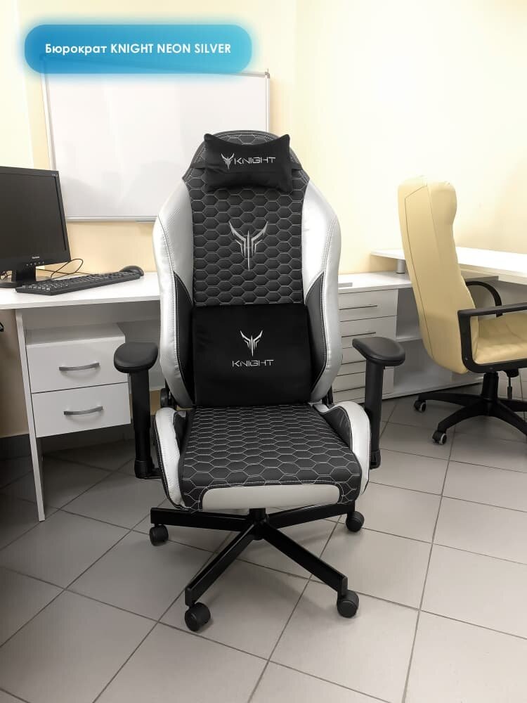 Кресло игровое KNIGHT NEON SILVER черный/серебряный, эко. кожа, с подголовником, крестовина металл