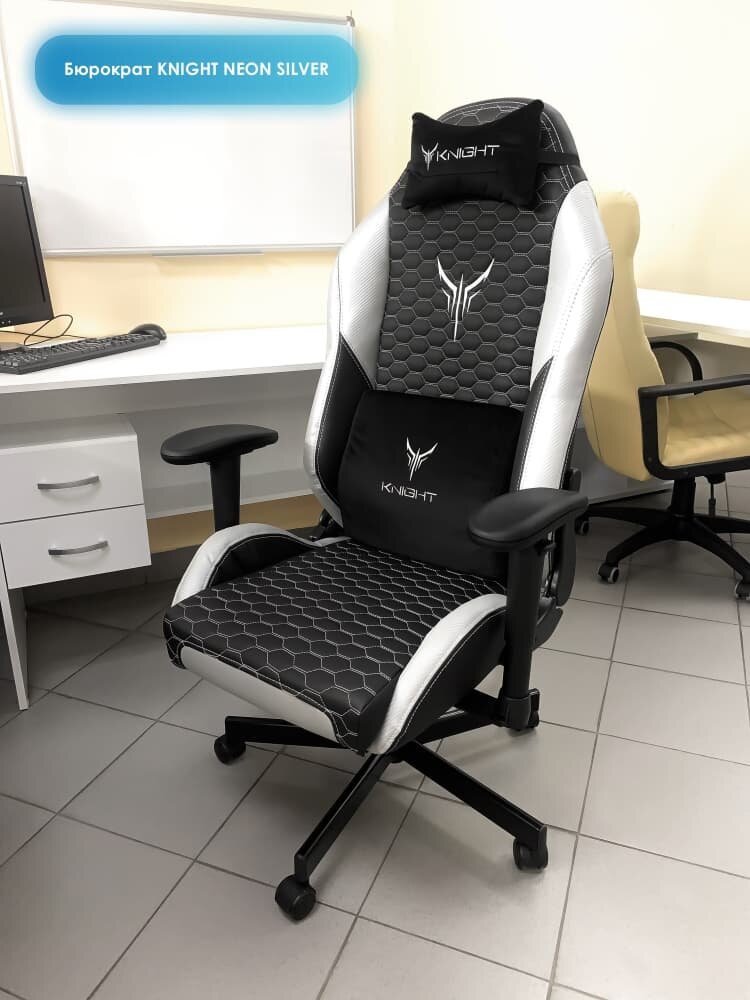 СохранитьКресло игровое Knight Neon черный/серебряный соты эко.кожа с подголов. крестовина металл интересное: