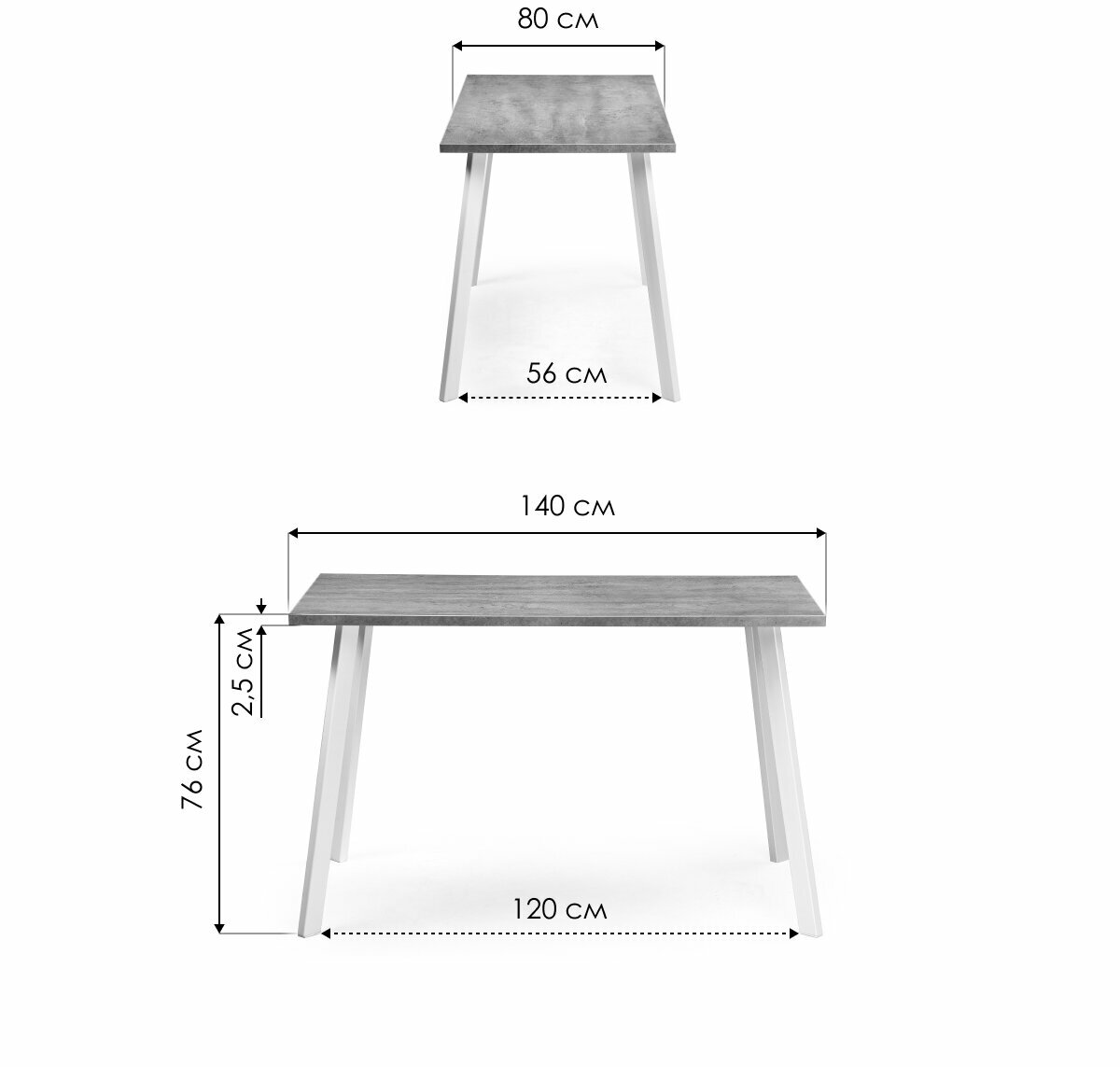 Стол Лайфмебель Тринити Лофт 140 25 мм бетон / белый матовый