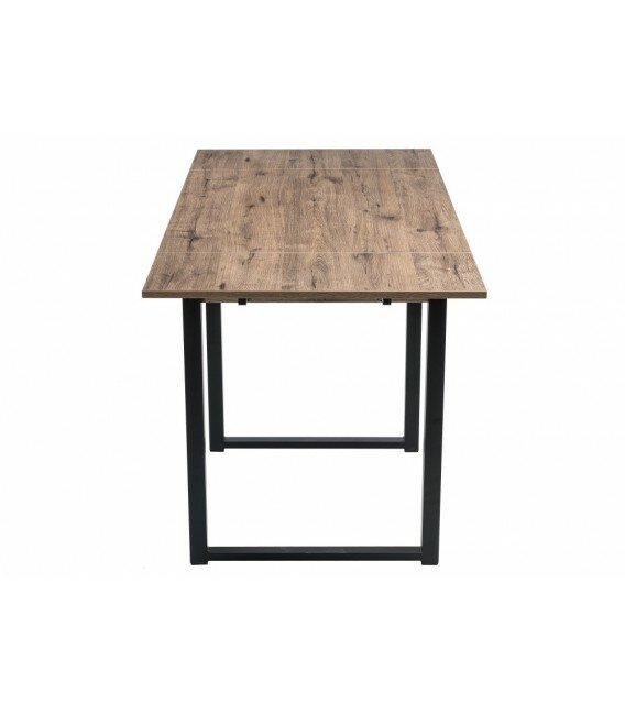 Стол обеденный Woodville Тринити Лофт 140 25 мм дуб делано темный / матовый черный
