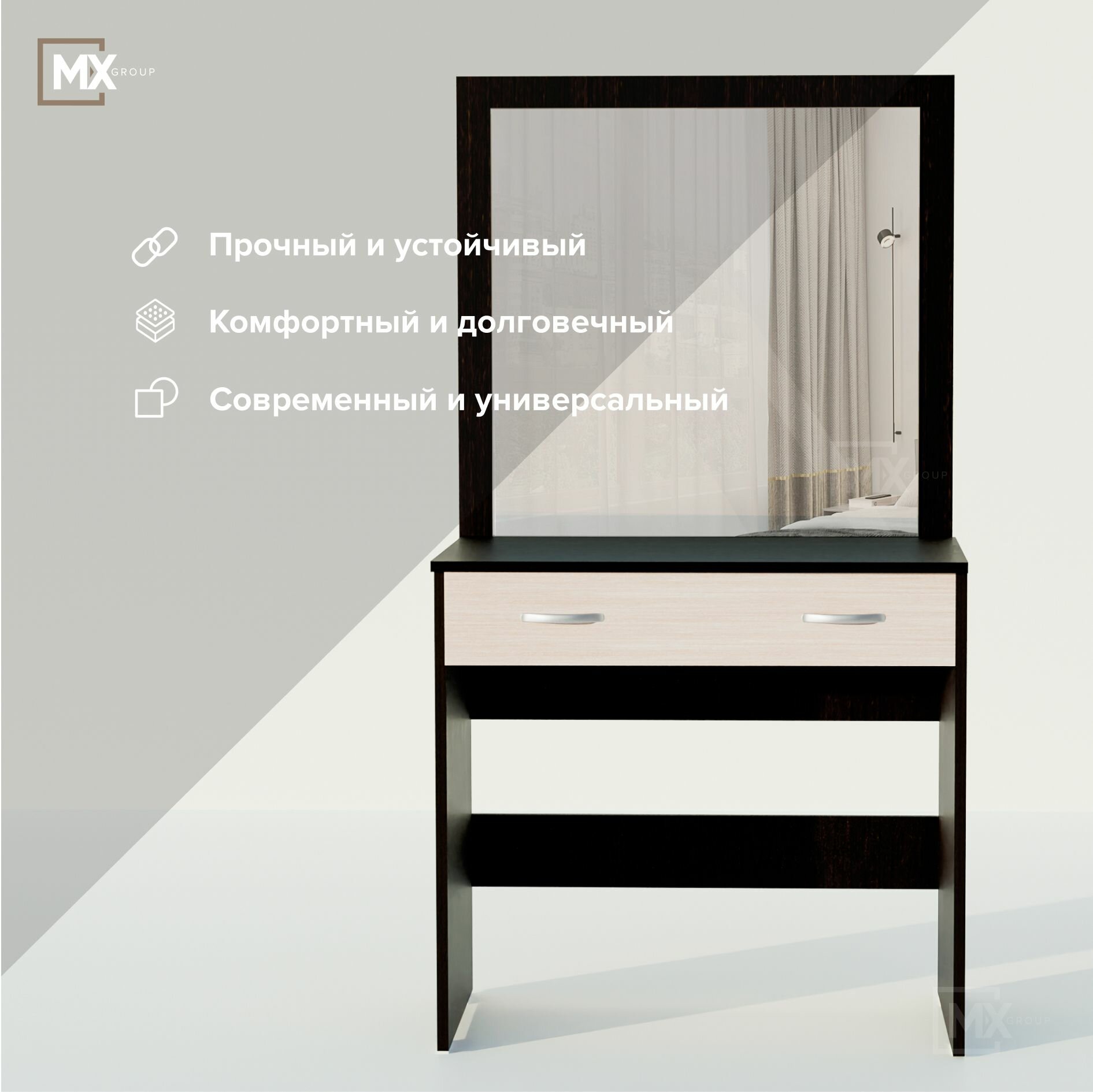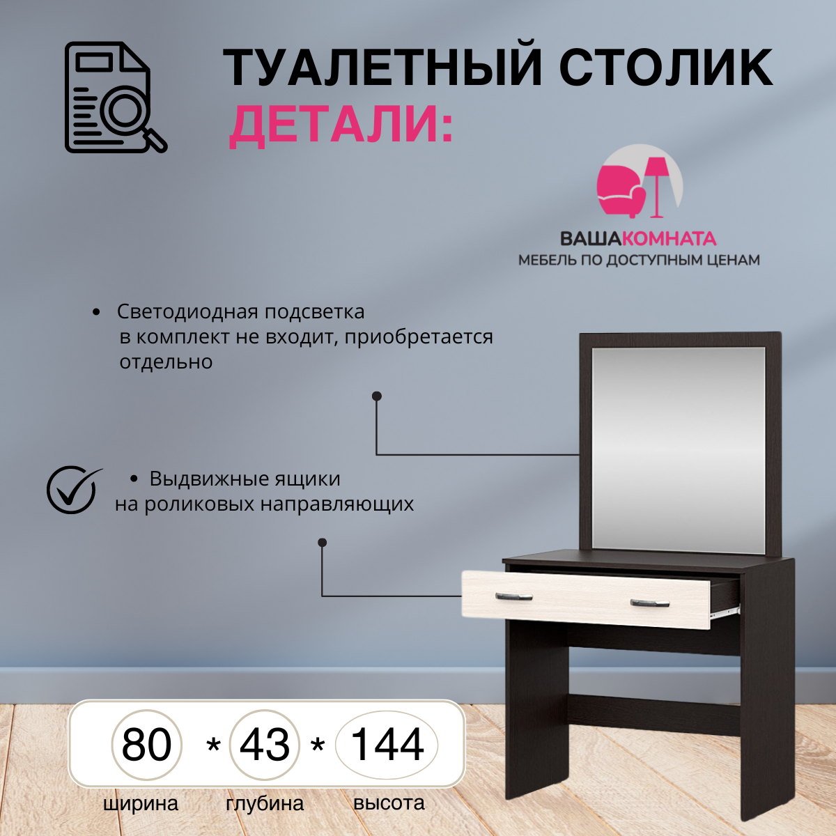 Стол туалетный Ронда СТ-01, Венге/Дуб Белфорд, ЛДСП, с ящиком, зеркалом, 1445х436х800, интерьер-центр