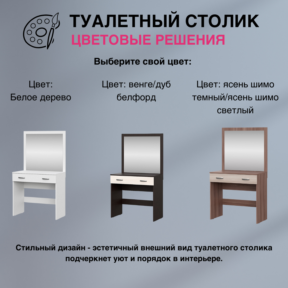 Стол туалетный Ронда СТ-01, Белое Дерево, ЛДСП, с ящиком, зеркалом, 1445х436х800, интерьер-центр