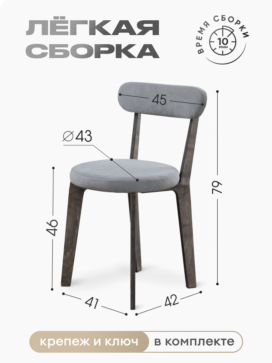 Стул для кухни мягкий со спинкой для дома темный дуб + серый