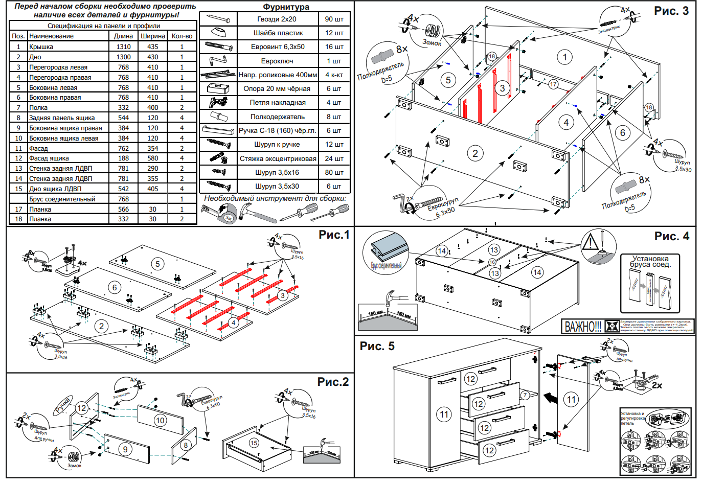 | Дополнительная информация | в комплект входит схема сборки и вся необходимая фурнитура |