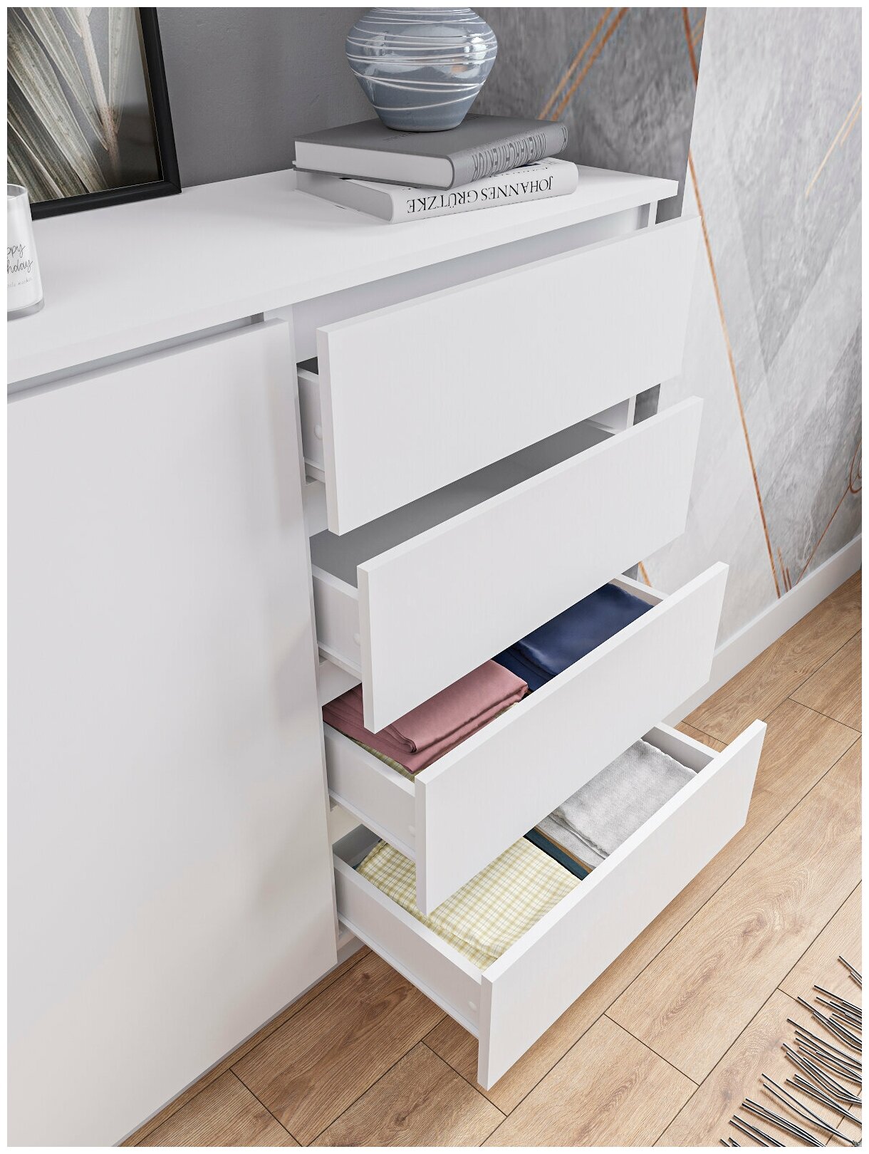 Комод мори 1200.10 Белый, 10 ящиков