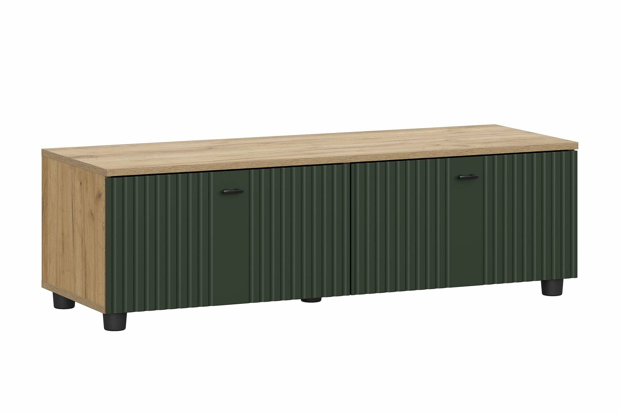 Тумба под телевизор напольная Ларенс ТВ с полками, с дверцами, закрытая, 120.1х41.8х36.8 см, Дуб золотой / Олива софт