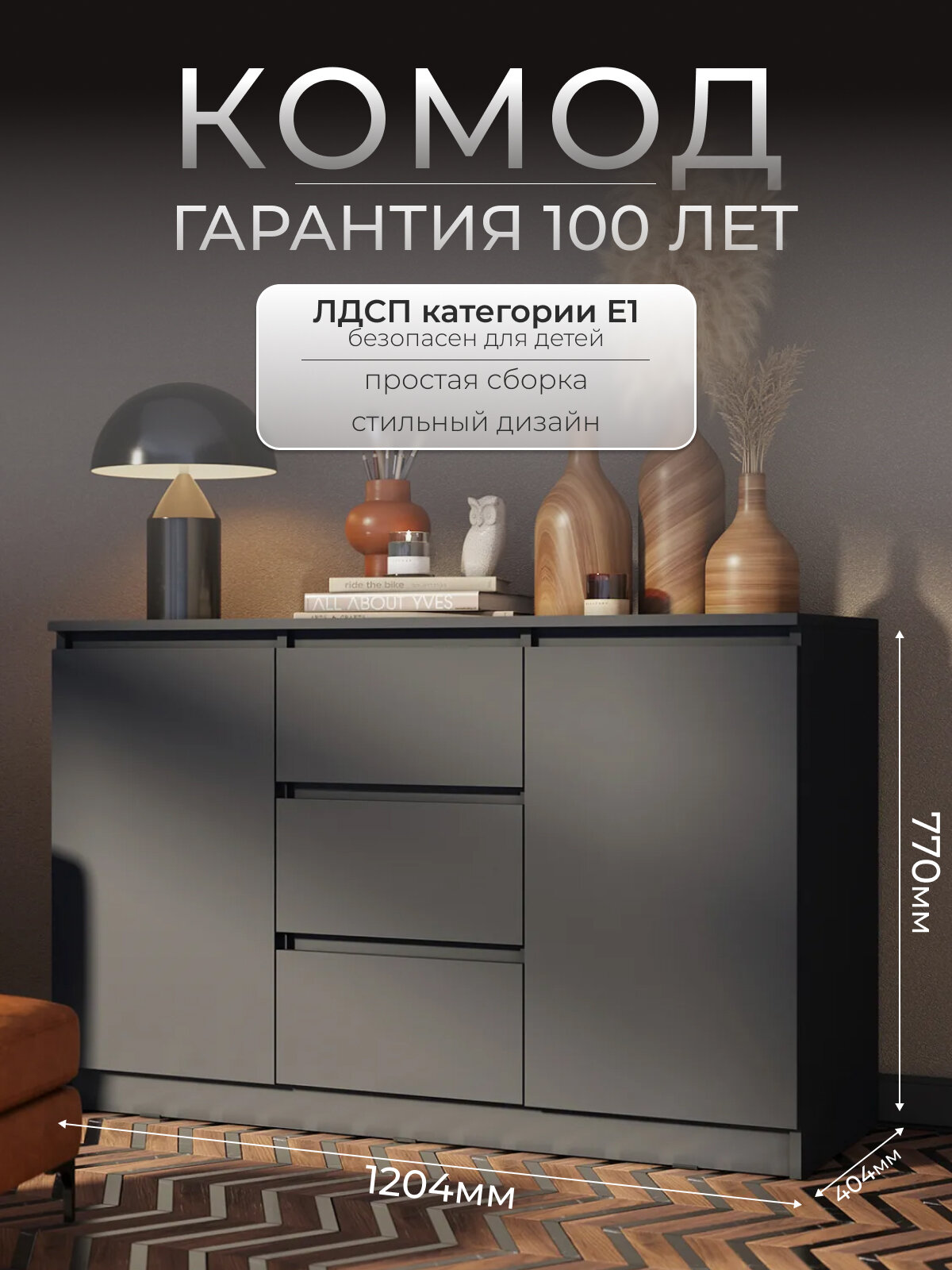 Комод ДСВ мебель, Мори МК1200.3/2, 3 ящика, графит