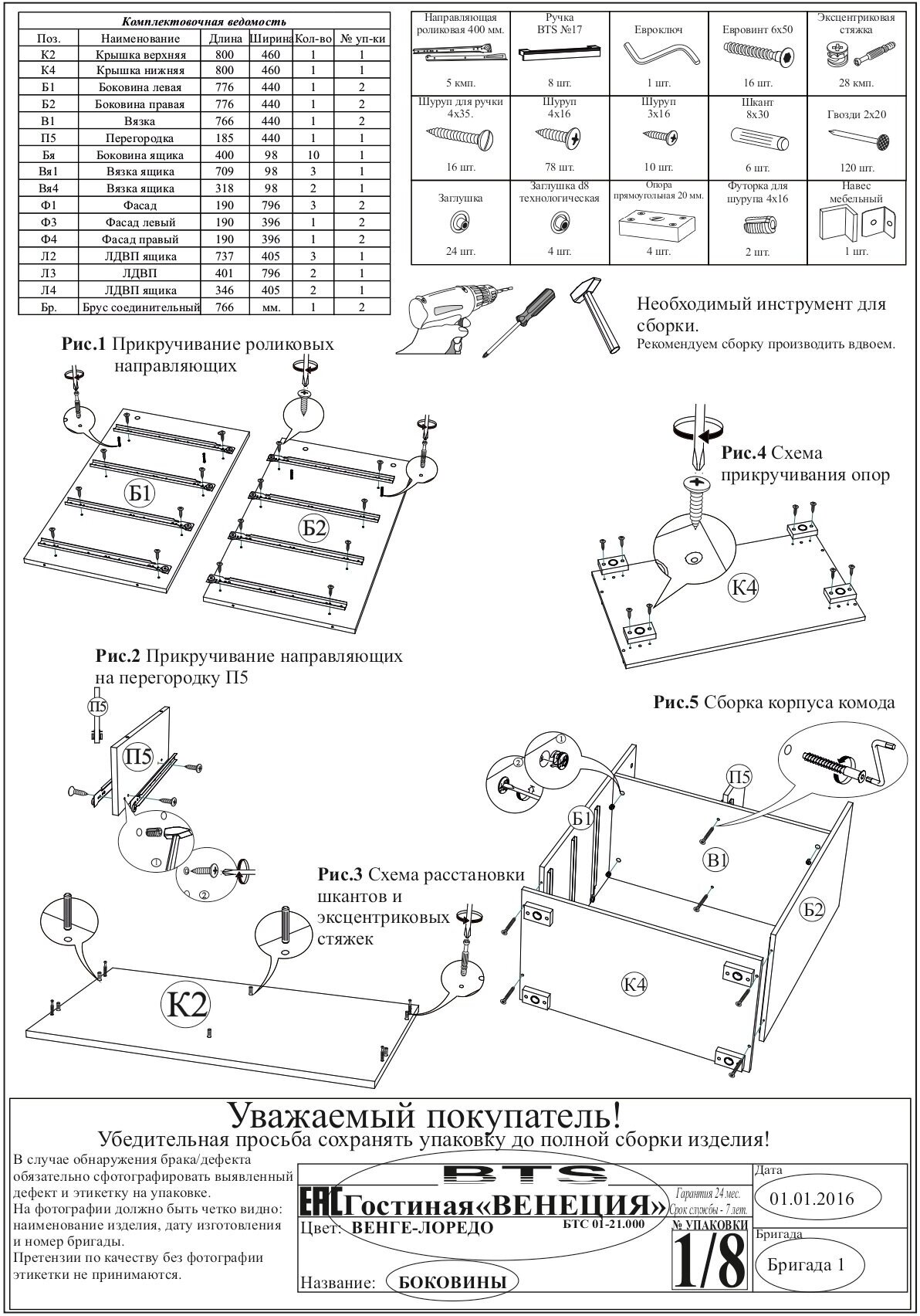 | Комплектация | Комод в разобранном виде, фурнитура, упаковка, инструкция |
