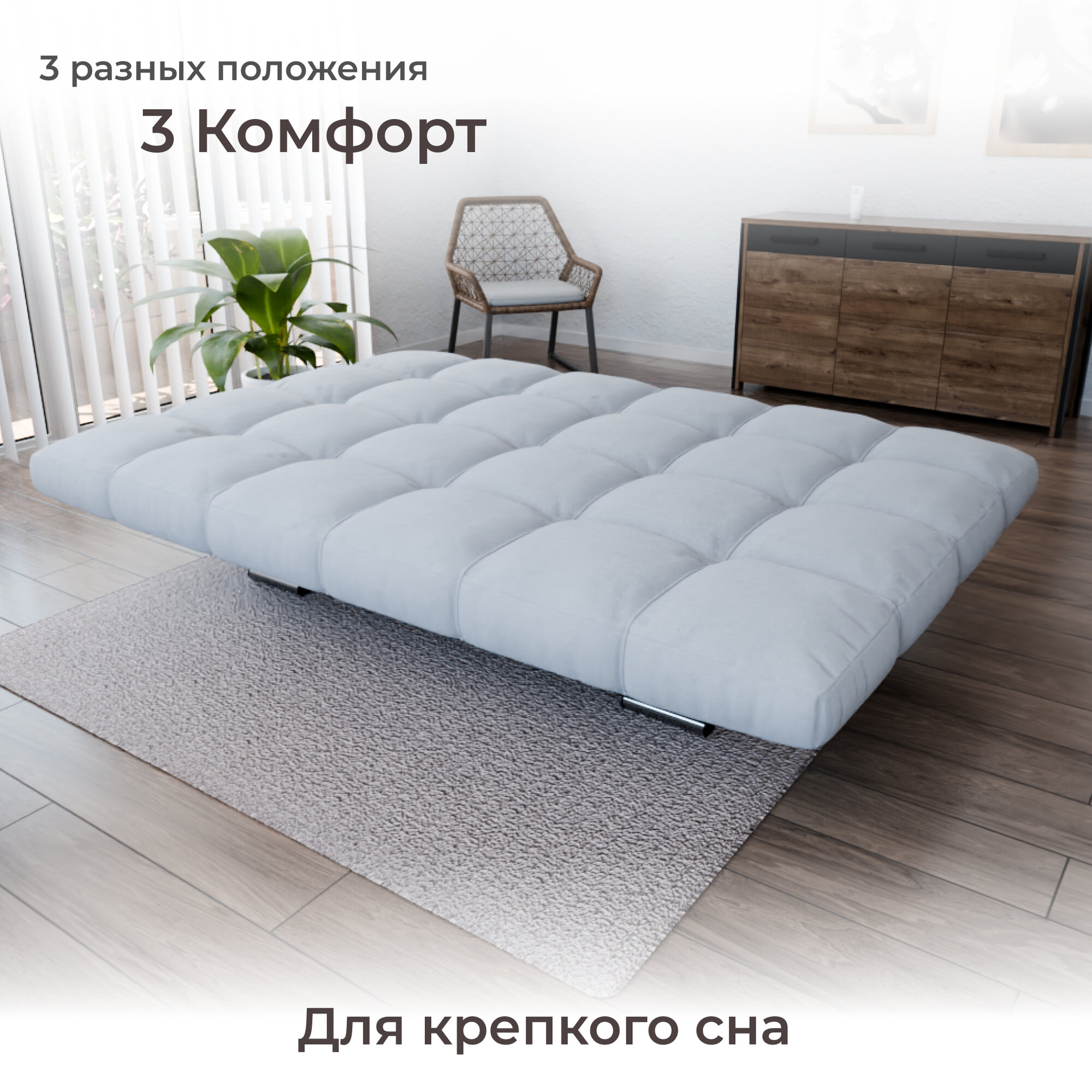 Диван-кровать "Klik-Klak" , YORCOM, Велютта люкс 50, размеры 175х100х100, Светло-серый