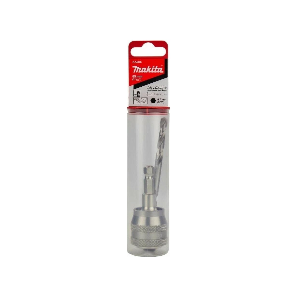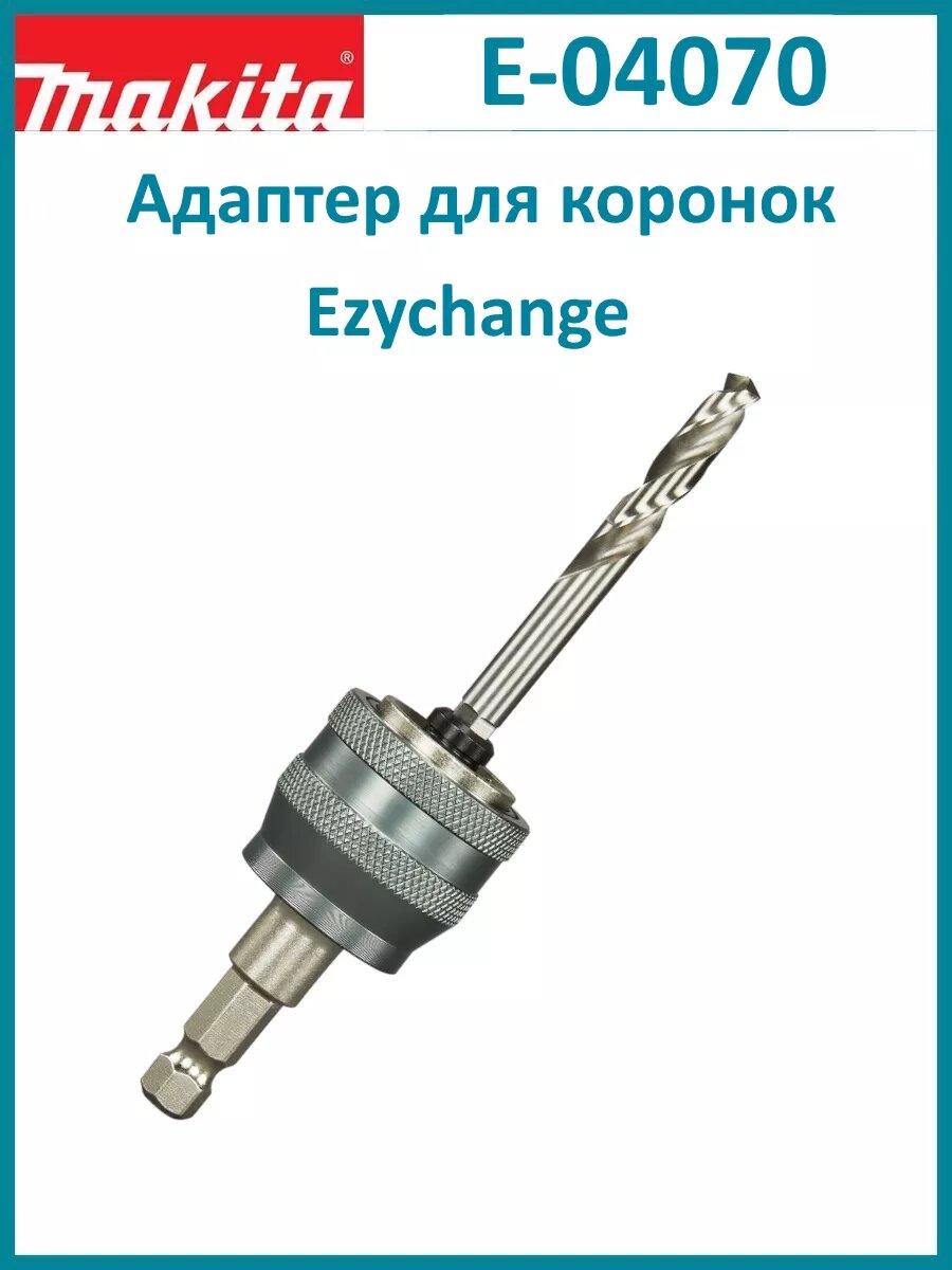 | Дополнительная информация | Min диаметр 16 мм, Max диаметр 152 мм, Адаптер Ezychange с направляющим сверлом Makita E-04070 - быстросменный адаптер для всех диаметров от 16 до 152 мм. Это позволяет быстро, безопасно и без инструментов заменять центрирующее сверло и коронки. |