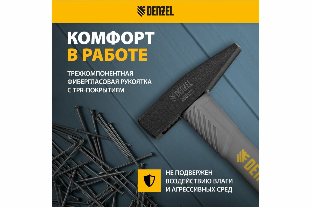 Молоток слесарный Denzel 200 г, кованый, фибергласовая рукоятка c TPR покрытием 10482