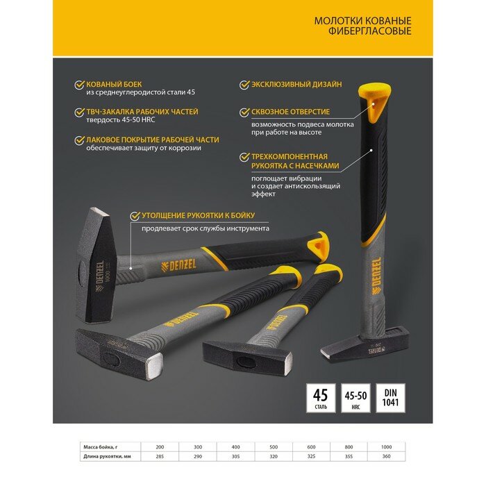 Ниже Вы можете прочитать отзывы на Молоток слесарный, 200 г, кованый, фибергласовая рукоятка c TPR покрытием Denzel, ознакомится с подробными характеристиками, посмотреть интересные обзоры и фотографии на Молоток слесарный, 200 г, кованый, фибергласовая рукоятка c TPR покрытием Denzel.