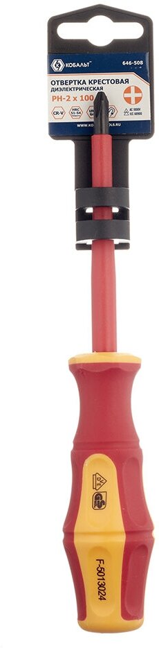 Отвертка диэлектрическая крестовая 100 мм 1000 В Кобальт (646-508) PH2