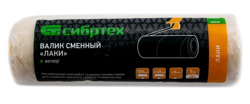 Валик сменный "Лаки", 180 мм, ворс 5 мм, D - 48 мм, D ручки - 6 мм, велюр Сибртех интересное: