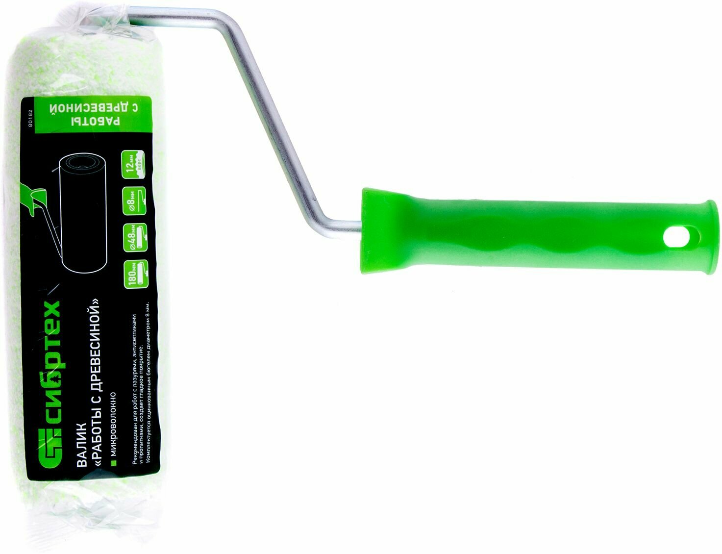 Валик сменный Сибртех Работы с древесиной 180 мм, ворс 12 мм, D 48 мм, D ручки 8 мм, микроволокно 80184