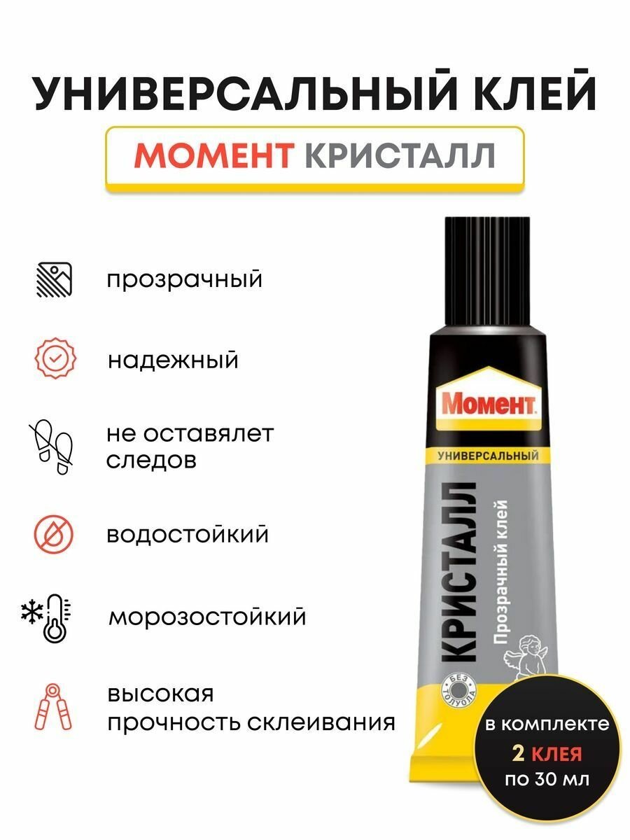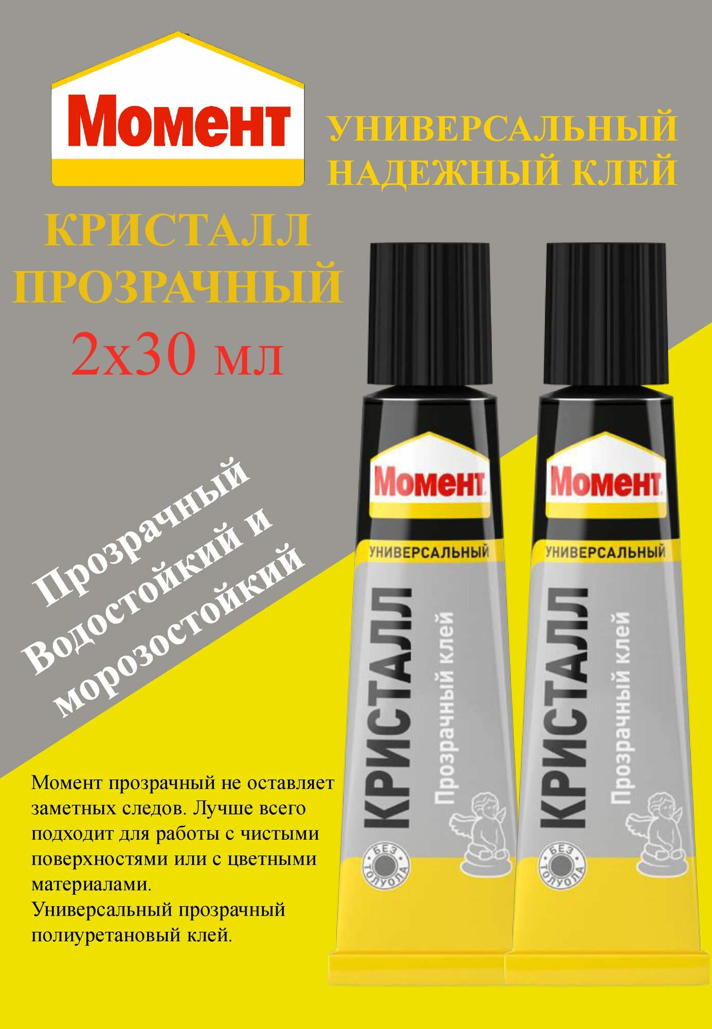 Клей Момент Кристалл/ контактный/универсальный/водостойкий/прозрачный/Набор 2шт х 30мл