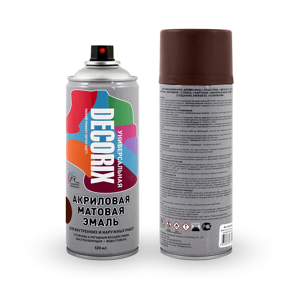 СохранитьDecorix Аэрозольная эмаль универсальная (коричневый, матовый, 520 мл) интересное: