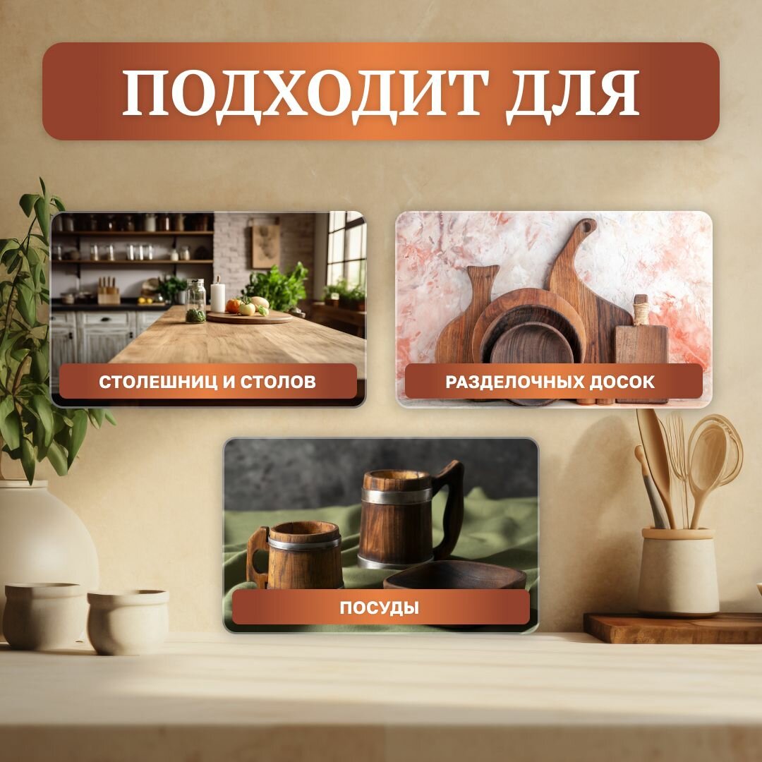| Дополнительная информация | Идеально для нанесения на деревянные столешницы и посуду, разделочные доски, стойкое к многократному мытью, на основе натурального масла |