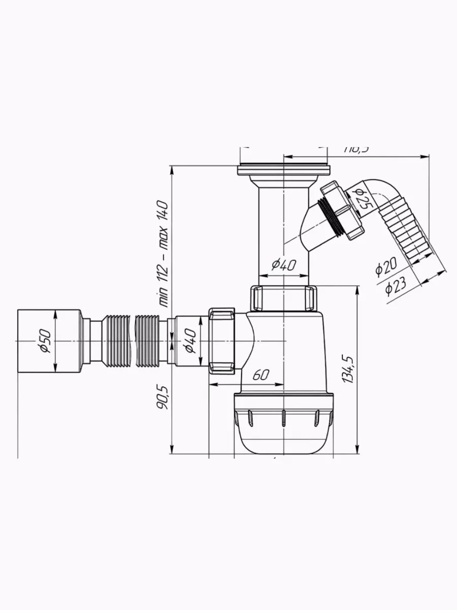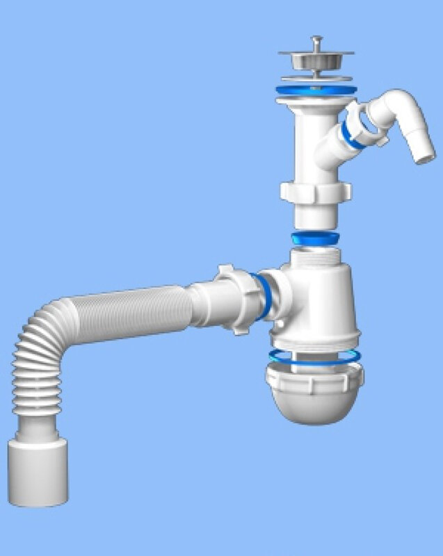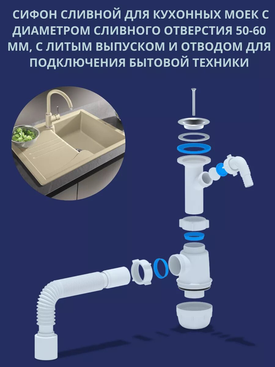 Сифон сливной для кухонных моек с диаметром слива 50-60 мм