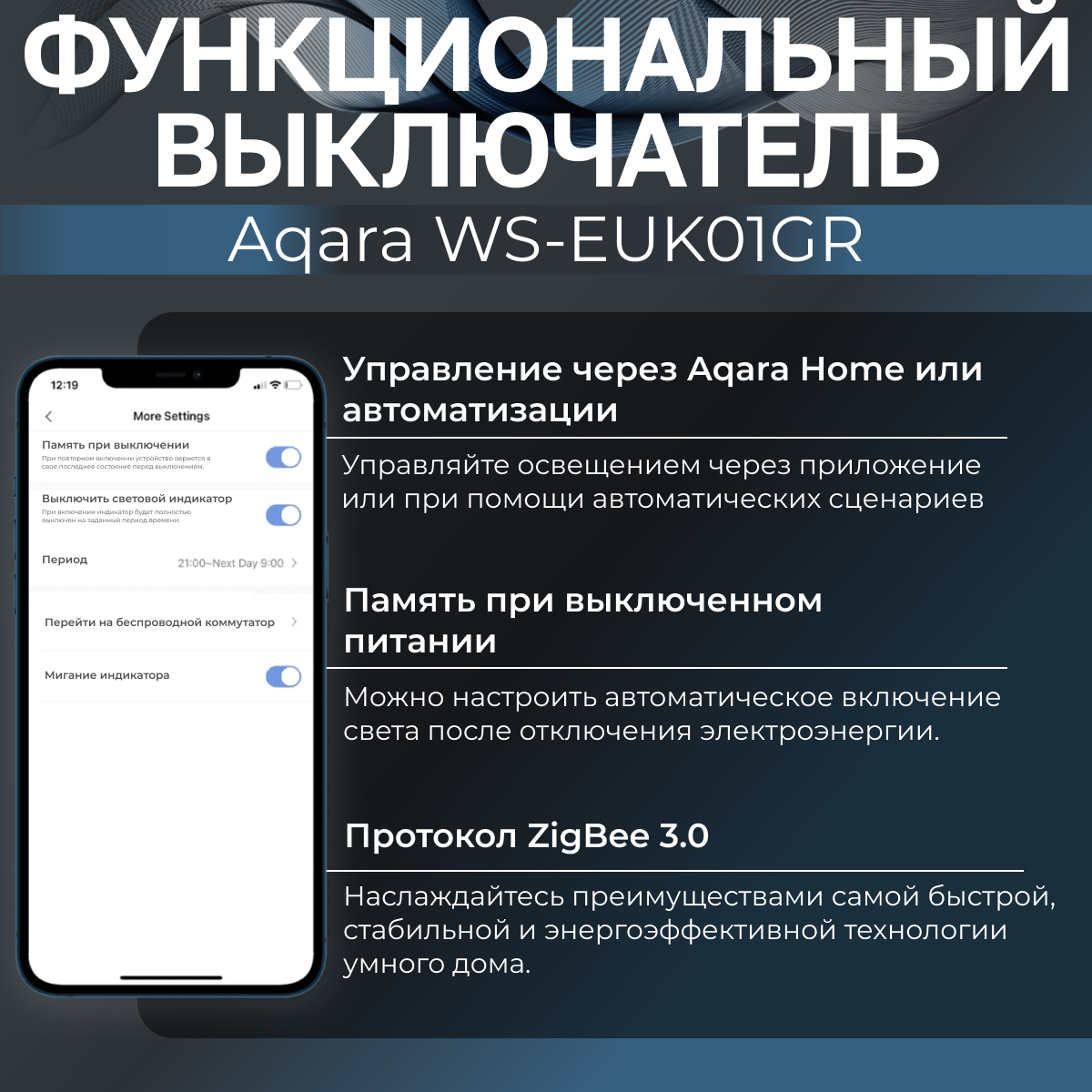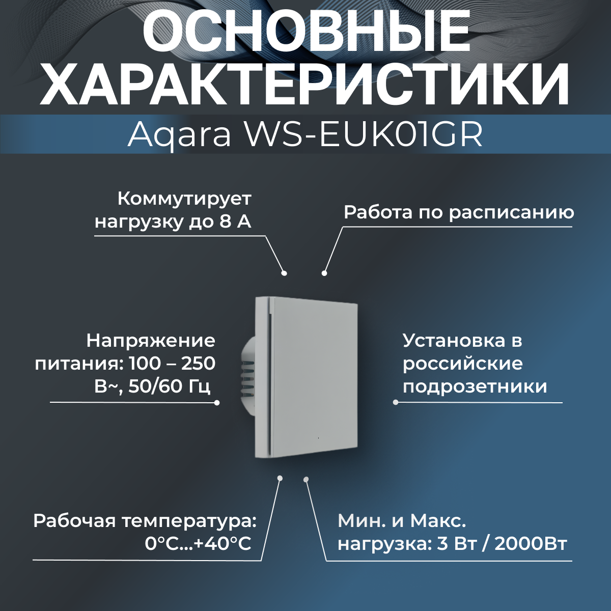 СохранитьУмный выключатель одноклавишный без нейтрали Aqara H1 WS-EUK01, умный дом, графитовый интересное: