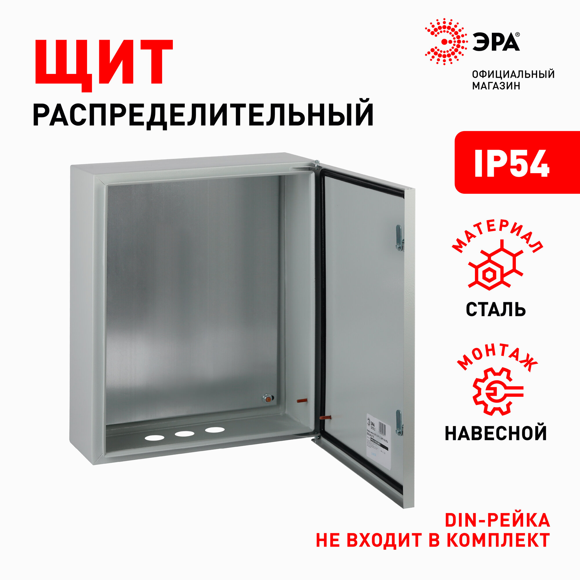 Купить Щит с монтажной панелью навесной ЭРА SIMPLE ЩМПг-06 стальной уличный с дверцей и замком IP54, 500x400x175 мм