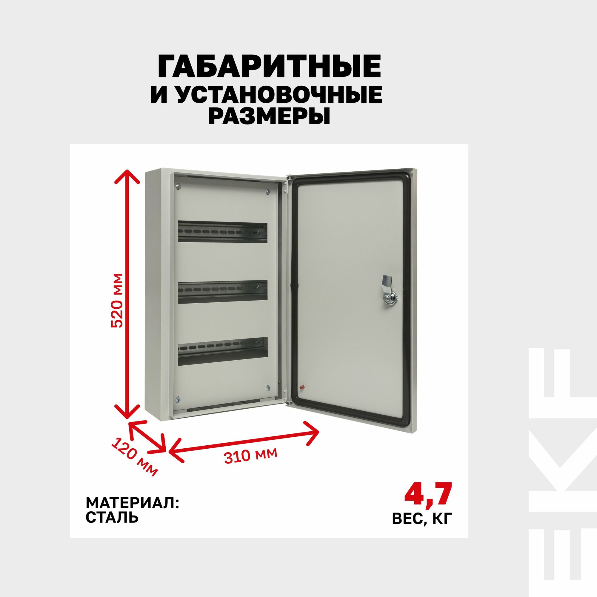 Щиток электрический металлический на 36 модулей (автоматов), пылевлагозащищенный, под 3 DIN-рейки (в комплект не входят), 3 ряда - Щит распределительный навесной ЩРН-36 (520х310х120) IP54 EKF Basic