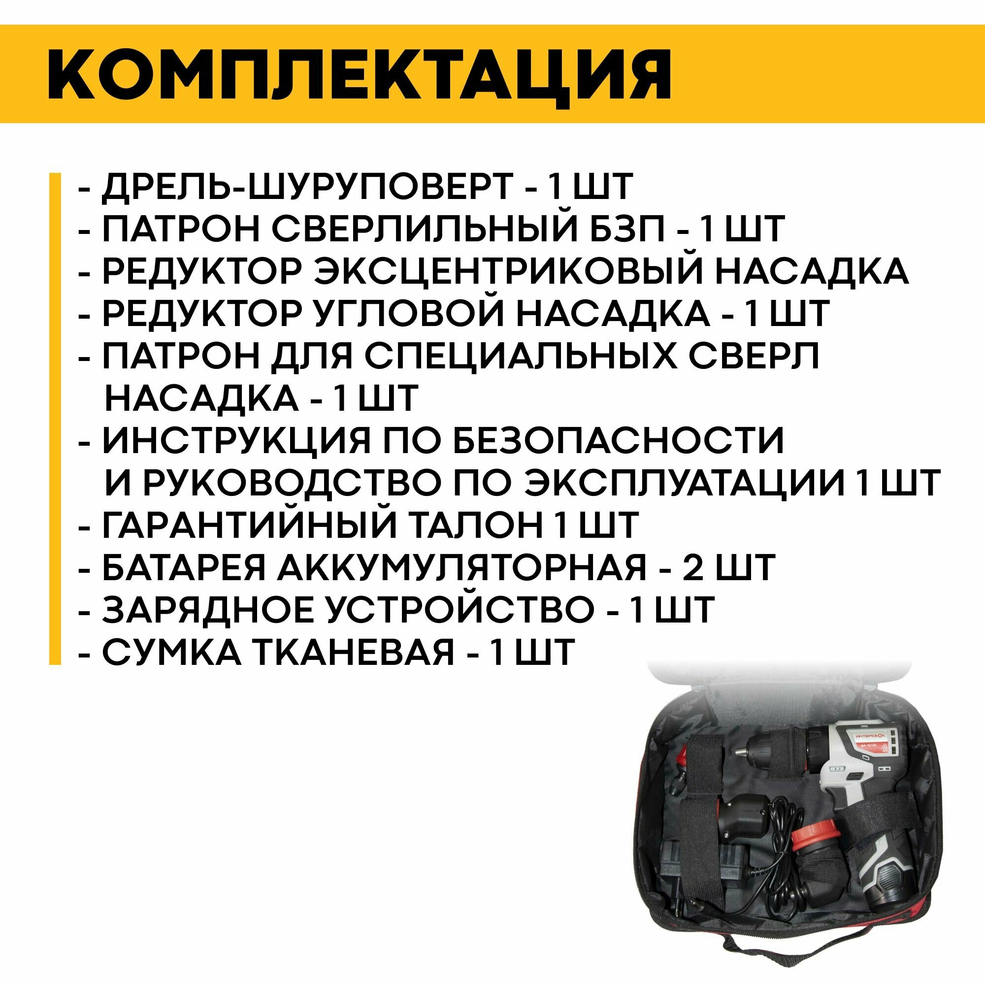 Дрель-Шуруповерт аккумуляторная в сумке Интерскол ДА-1012В комбимакс 36 687.2.2.78