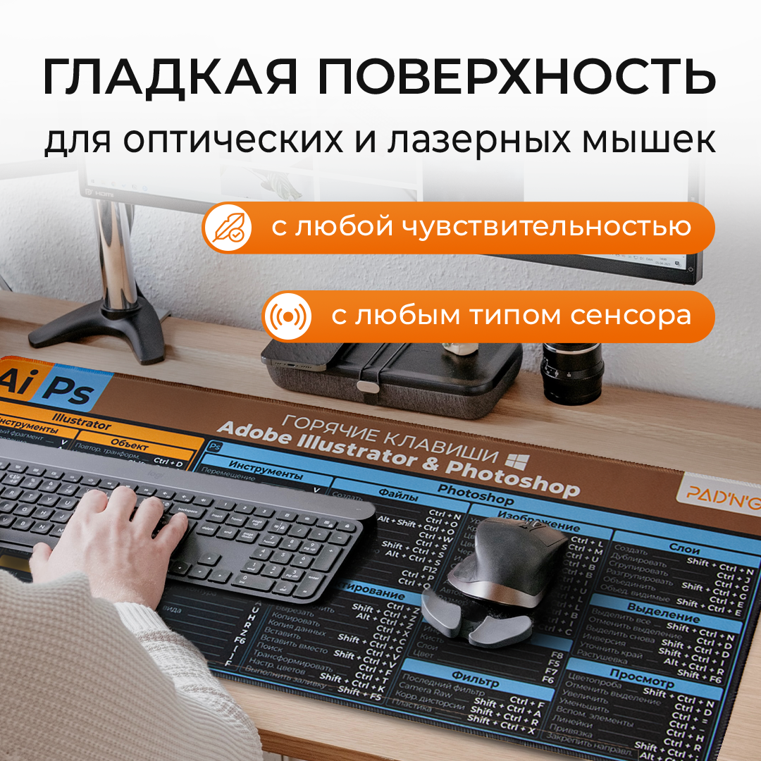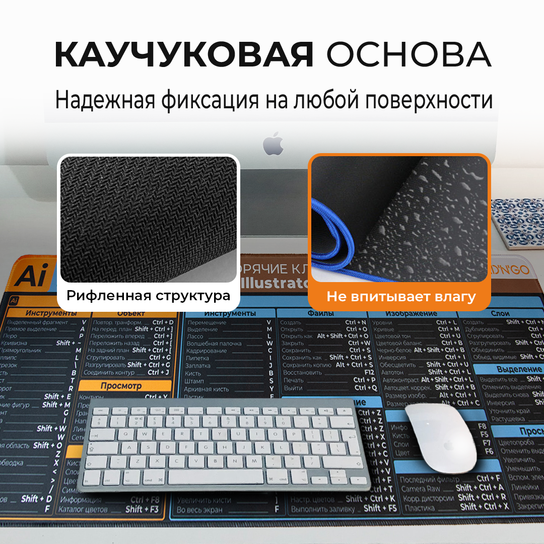 СохранитьКоврик для мышки и клавиатуры игровой, 800*300*2, Горячие клавиши Illustrator и Photoshop интересное: