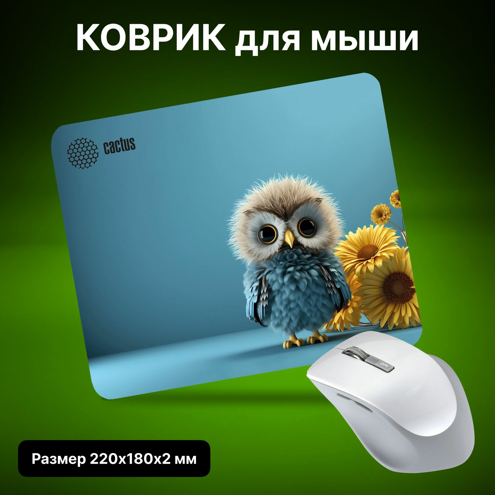 СохранитьКоврик для мыши Cactus Owl blue 220x180x2мм (CS-MP-P07XS) интересное: