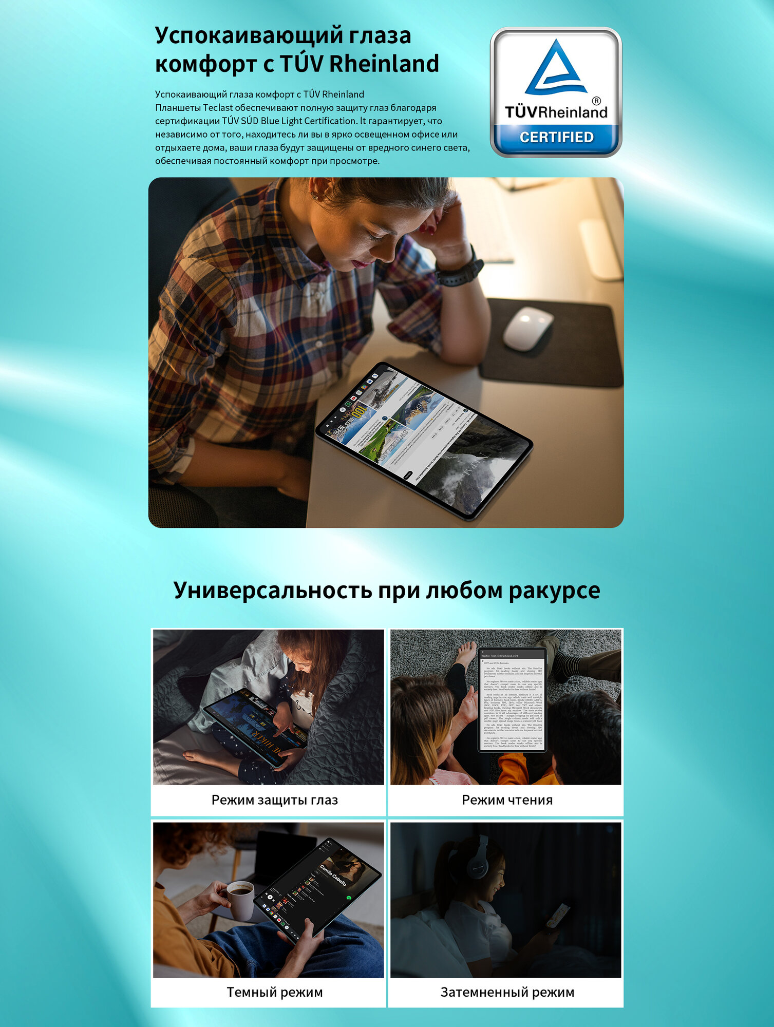10.1" Планшет TECLAST M50 6/128 GB T606 4G, 1280 x 800, 90Гц, Android 14, голубой