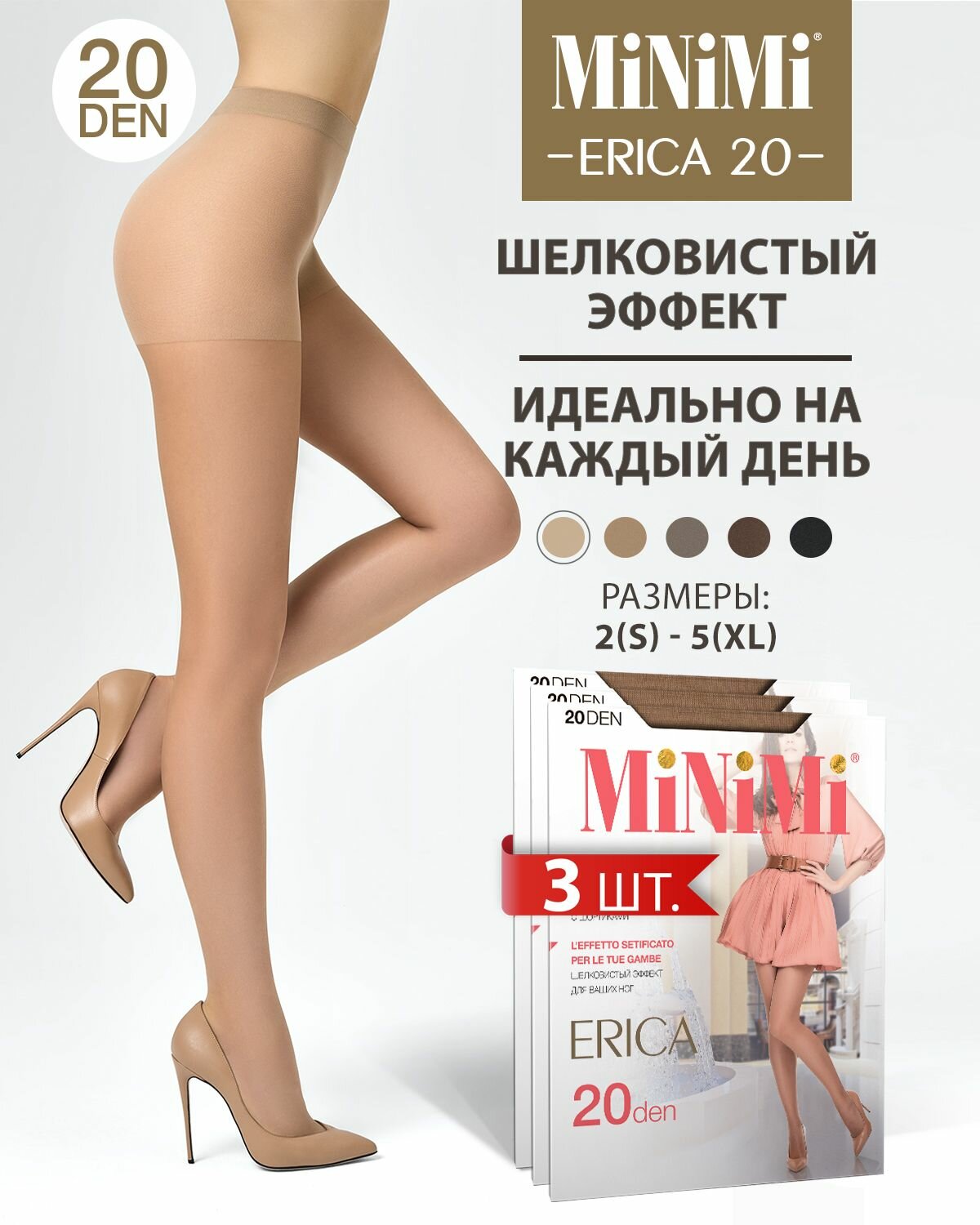 Колготки женские MINIMI Mini ERICA 20 Cappuccino 3 (спайка 5 шт.)