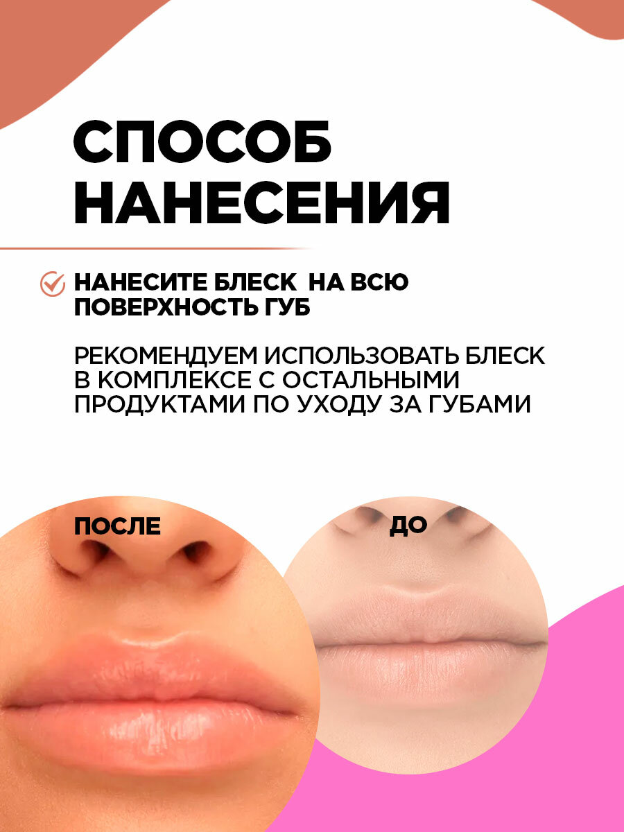 | Способ применения | наносите блеск аппликатором от середины губ к контуру. Для большего объема немного выйдите за границы верхней губы. Блеск можно использовать самостоятельно или наносить поверх помады |