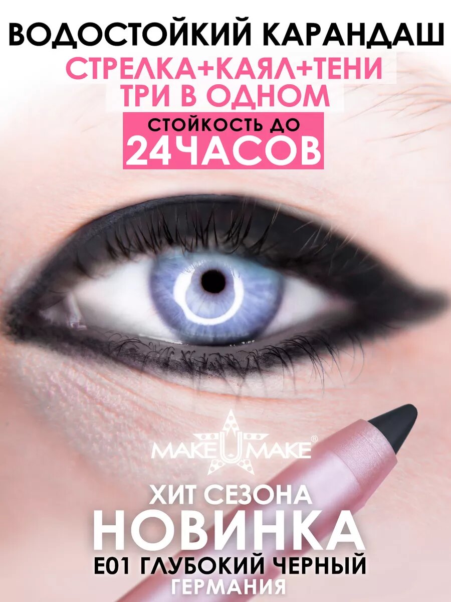 MAKE U MAKE Подводка-тени-каял 24 часа E01 - Черный Уголь интересное: