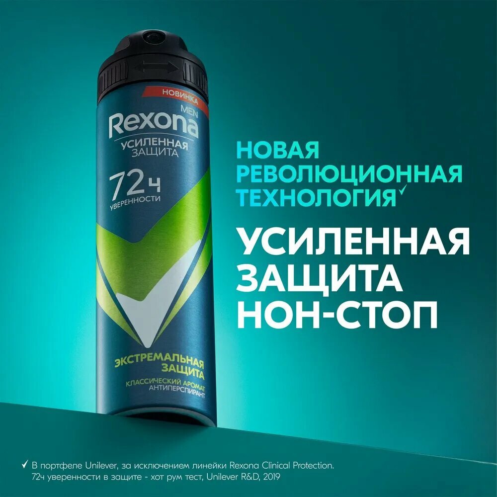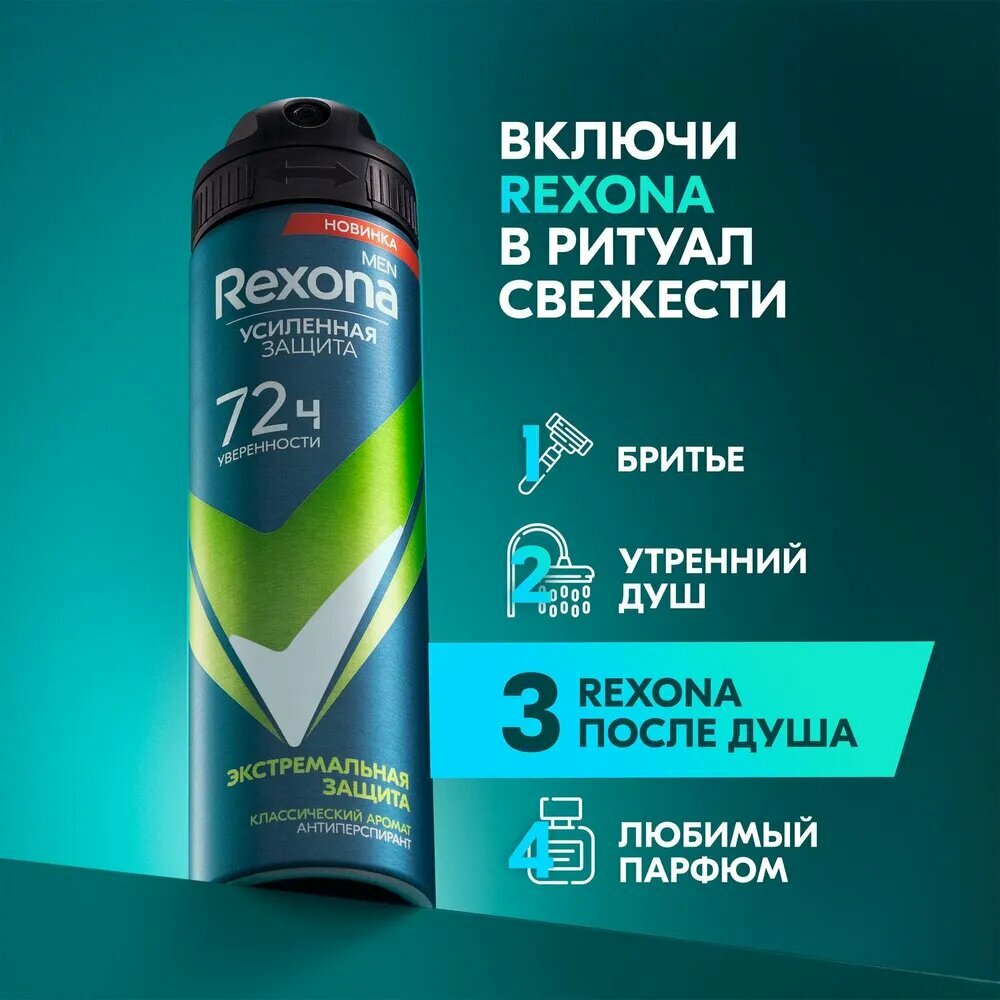 Купить Rexona антиперспирант аэрозоль Экстремальная защита, 72 ч. нон-стоп защита от пота и запаха 2 x 150 мл (2 штуки)