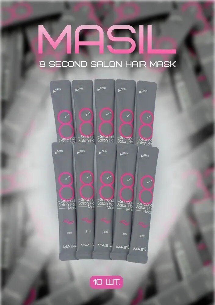 Masil Маска для волос салонный эффект за 8 секунд, Маска филлер для волос увлажняющая профессиональная 8 секунд масил, набор саше 10штх8мл Корея