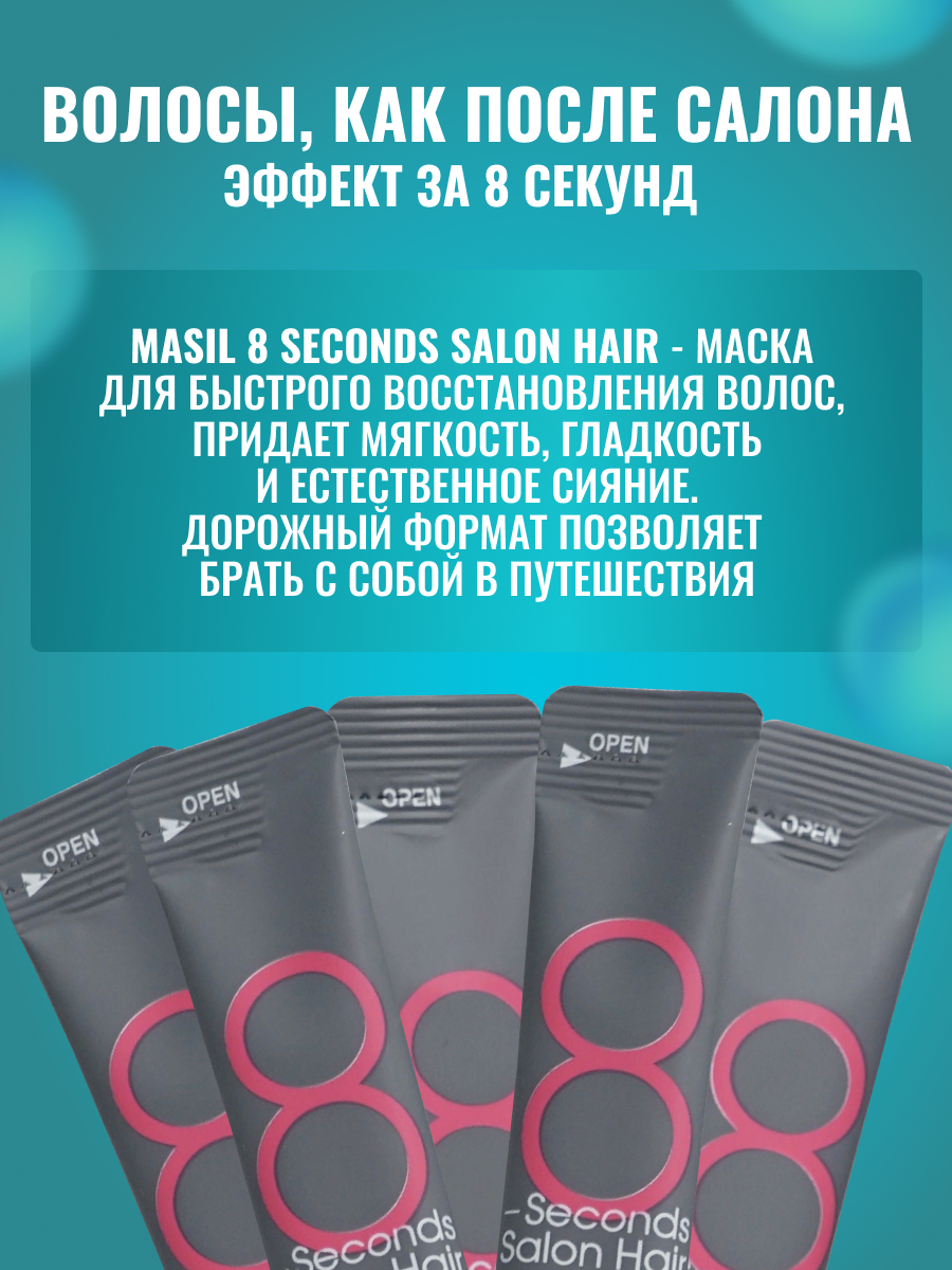 Masil Маска для волос салонный эффект за 8 секунд, Маска филлер для волос увлажняющая профессиональная 8 секунд масил, набор саше 5штх8мл Корея