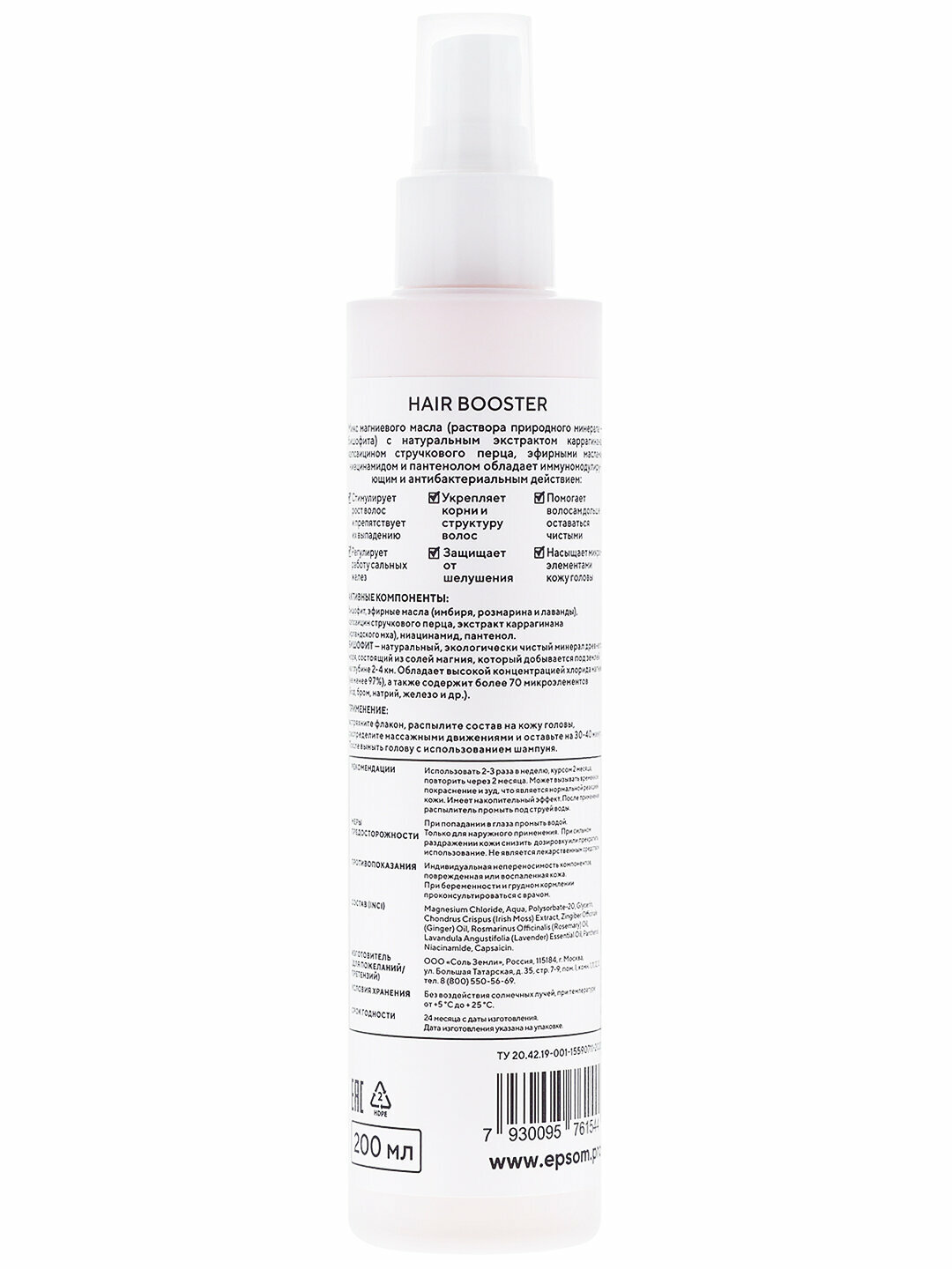 Магниевое масло "HAIR BOOSTER" для роста и укрепления волос EPSOM.PRO,200 мл. интересное: