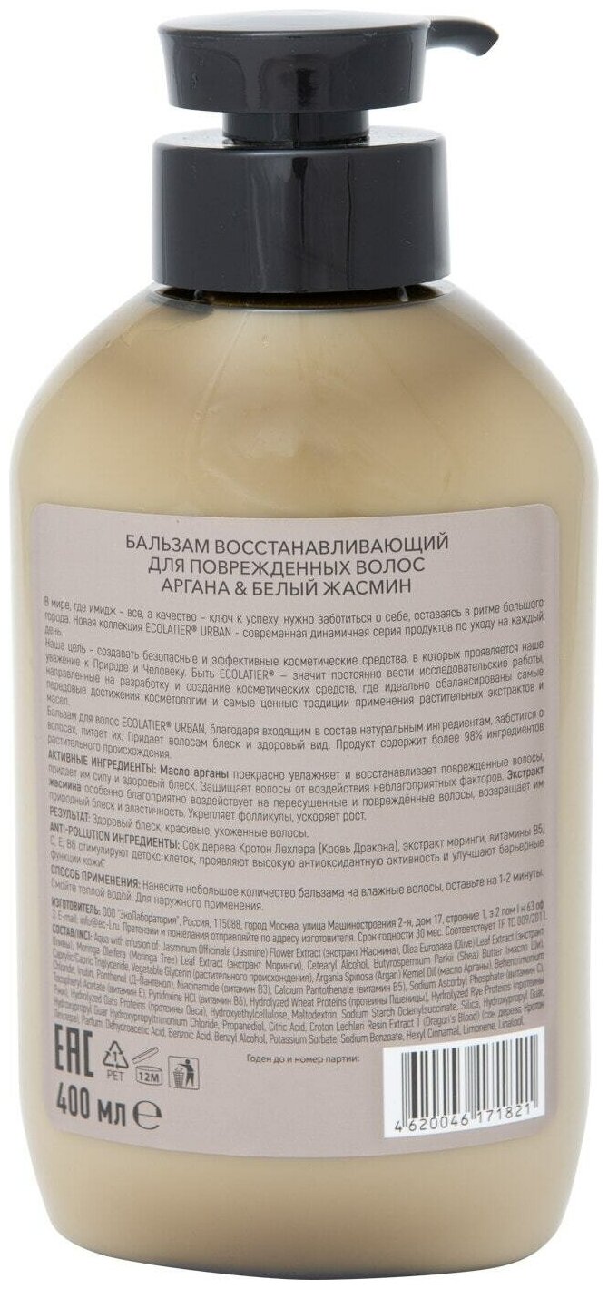 Ecolatier Urban Бальзам восстанавливающий Аргана и белый жасмин для поврежденных волос 400 мл