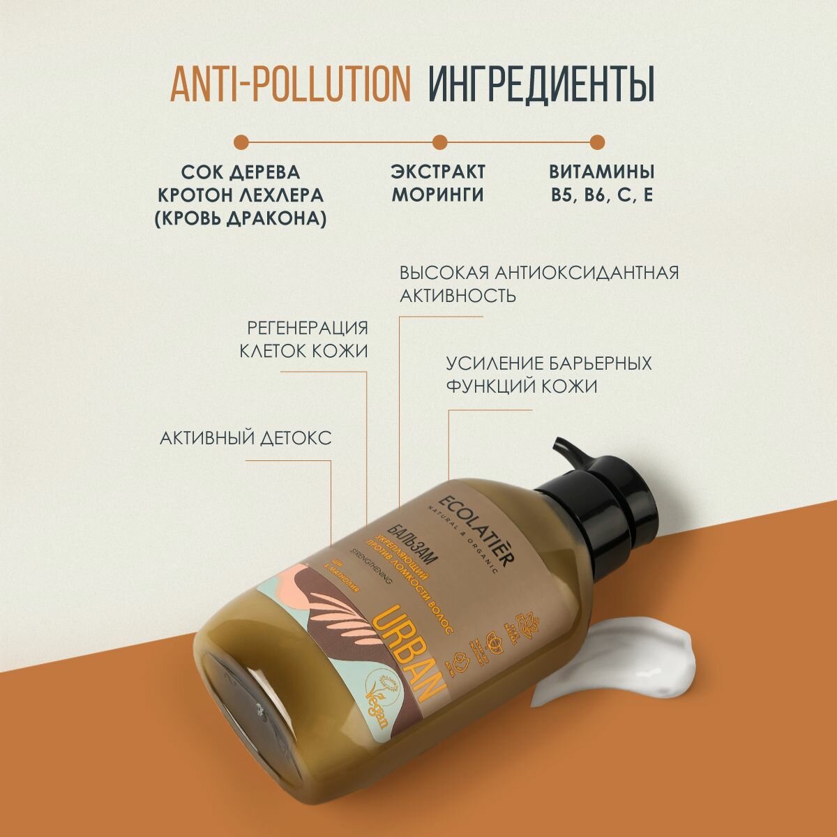 | Дополнительная информация | Бальзам для волос ECOLATIER URBAN, благодаря входящим в состав натуральным ингредиентам, заботится о волосах, питает их. Придает волосам блеск и здоровый вид. АКТИВНЫЕ ИНГРЕДИЕНТЫ: Масло ши питает и увлажняет сухие волосы, возвращает им жизненную силу. Экстракт магнолии укрепляет и защищает ломкие волосы, формирует на поверхности волос пленку, защищающую их от потери влаги и воздействия агрессивных факторов внешней среды. Сок дерева Кротон Лехлера (Кровь Дракона), экстракт моринги, витамины В5, В6, С, Е стимулируют детокс клеток, регенерируют кожу, проявляют высокую антиоксидантную активность и улучшают барьерные функции кожи. |