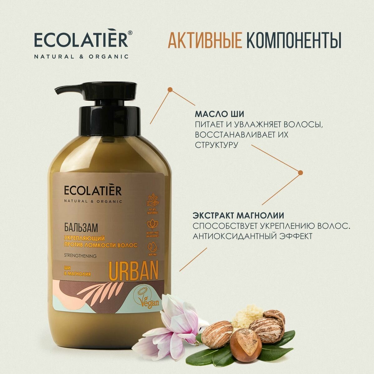 Ecolatier Urban Бальзам укрепляющий Ши и магнолия против ломкости волос 400 мл интересное: